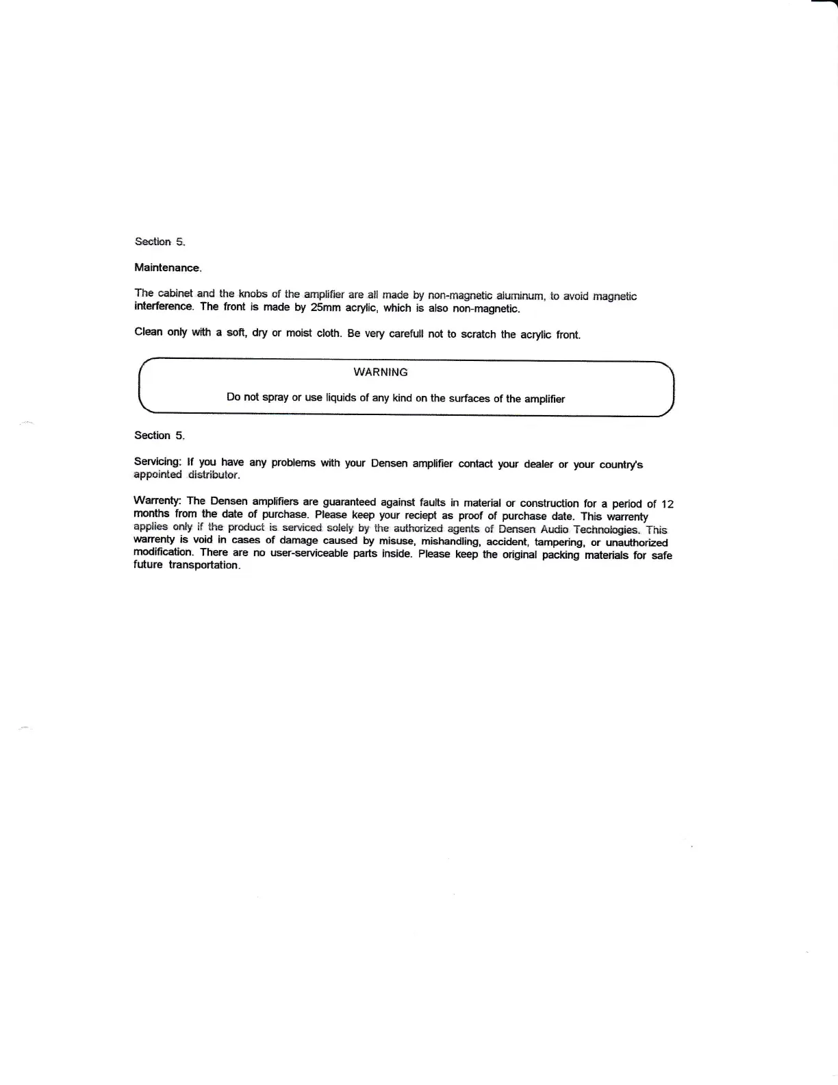 Densen BEAT B-100 - Maintenance and Servicing; Warranty and Service Information