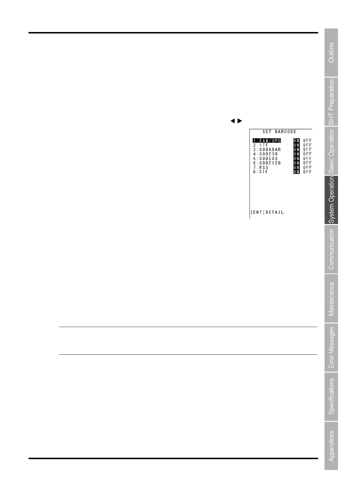 2. Press ENT key for the detailed settings of the bar code beign selected. Refer to the following
