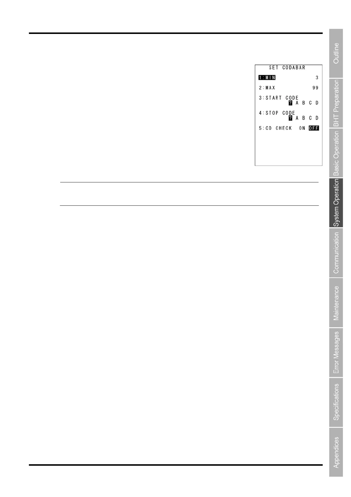 1. Select “3: CODABAR” at the SET BARCODE menu and then press