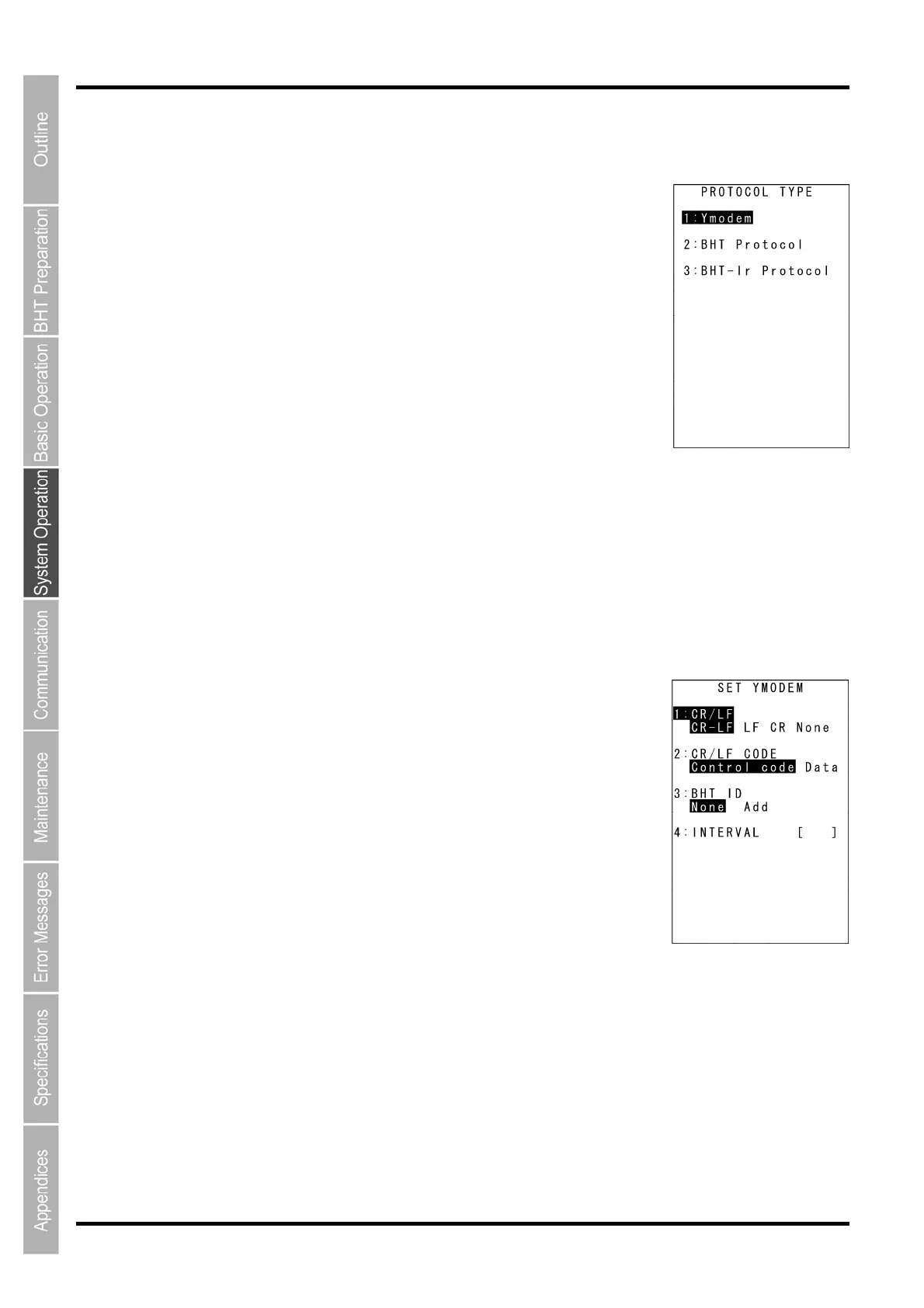 Selects the BHT-protocol when uploading/downloading in System Mode