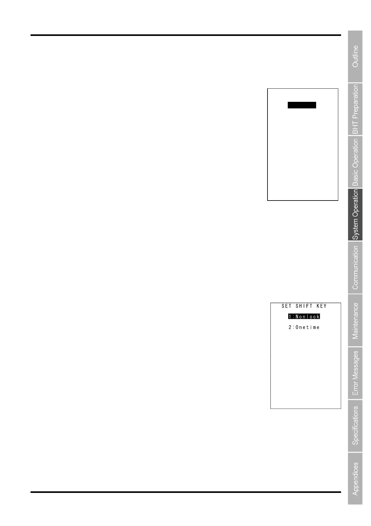 1. Select “1: SHIFT KEY” at the SET KEY menu and then press the