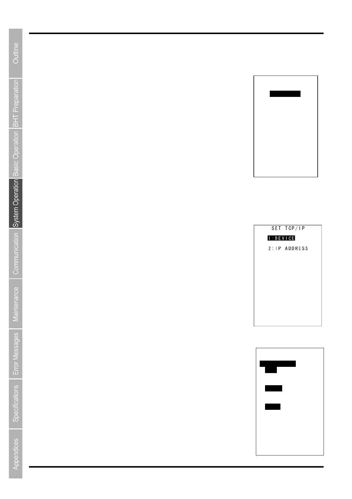 Select “1: DEVICE” at the SET TCP/IP menu to display the screen on the