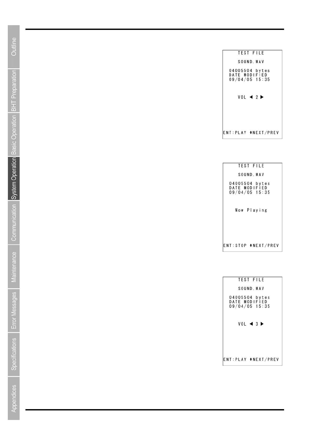 1. Use the cursor keys ([▲] [▼]) to select a *.WAV file, and then press the ENT