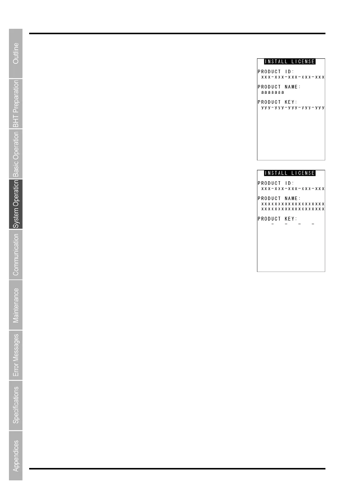 3. Press and hold the BS/C key to return to the LICENSE INFORMATION screen.
