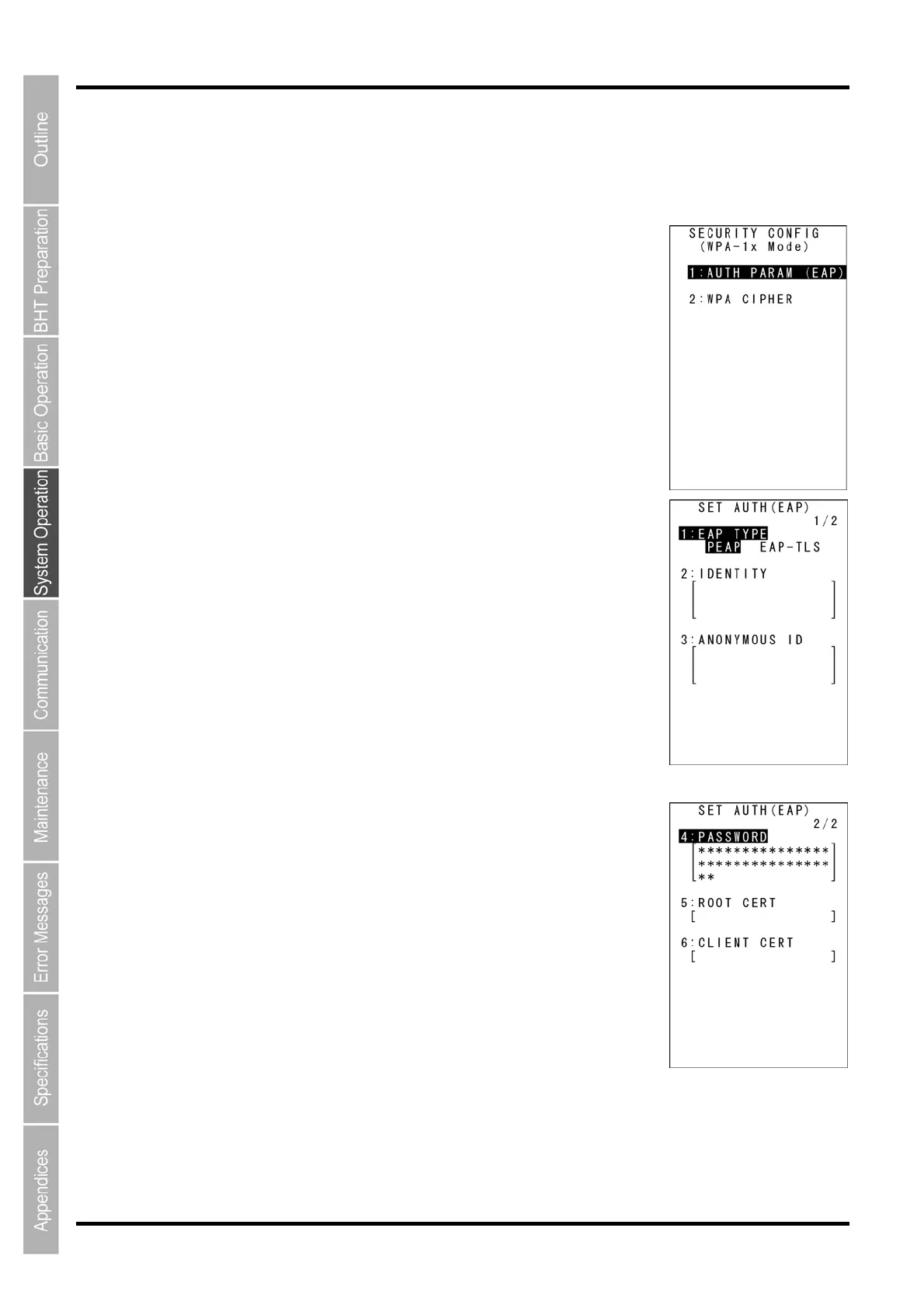 EAP TYPE], and then use the cursor keys ([◄] [►]) to select PEAP
