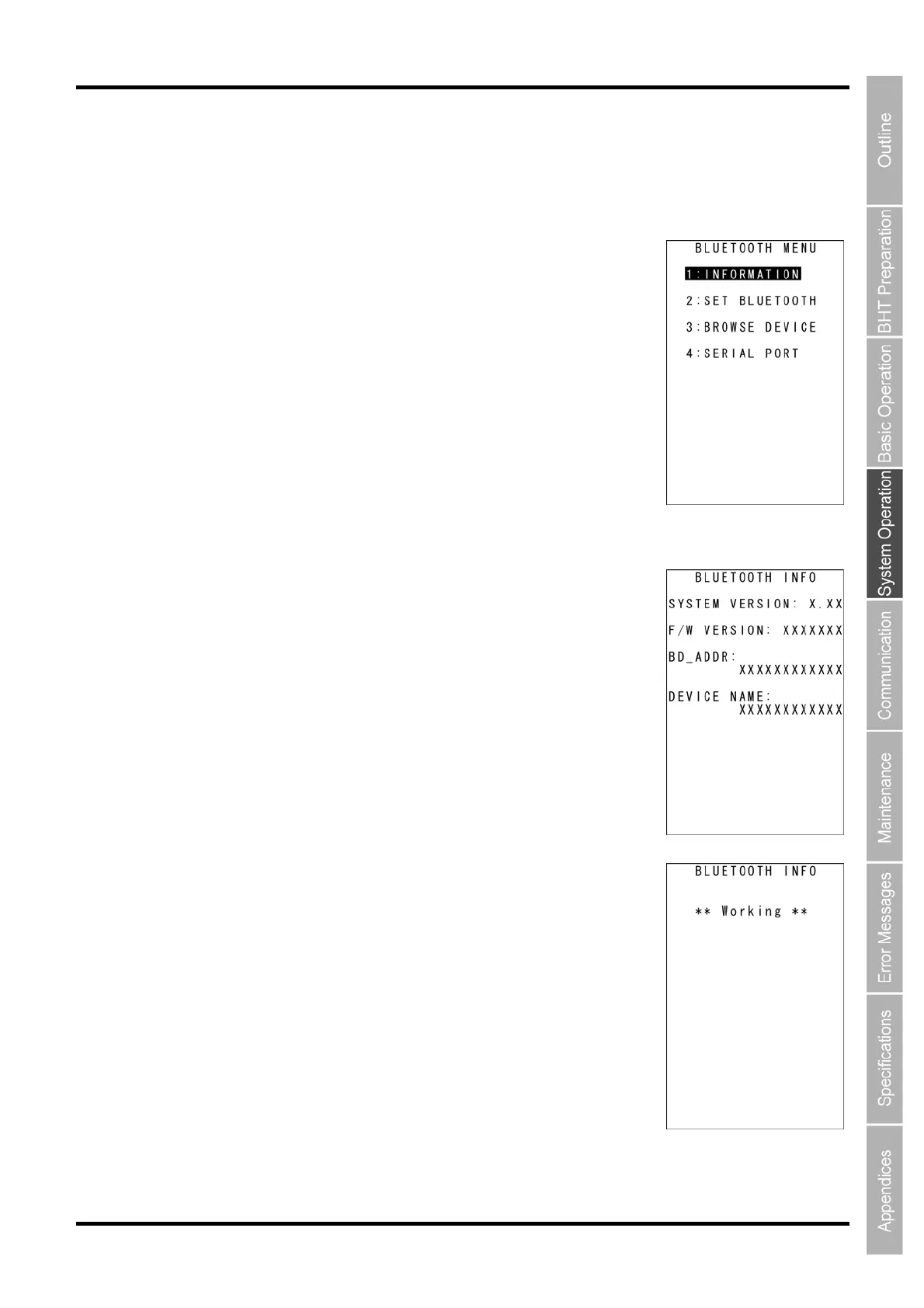 1. Select “1: INFORMATION” at the BLUETOOTH MENU and then