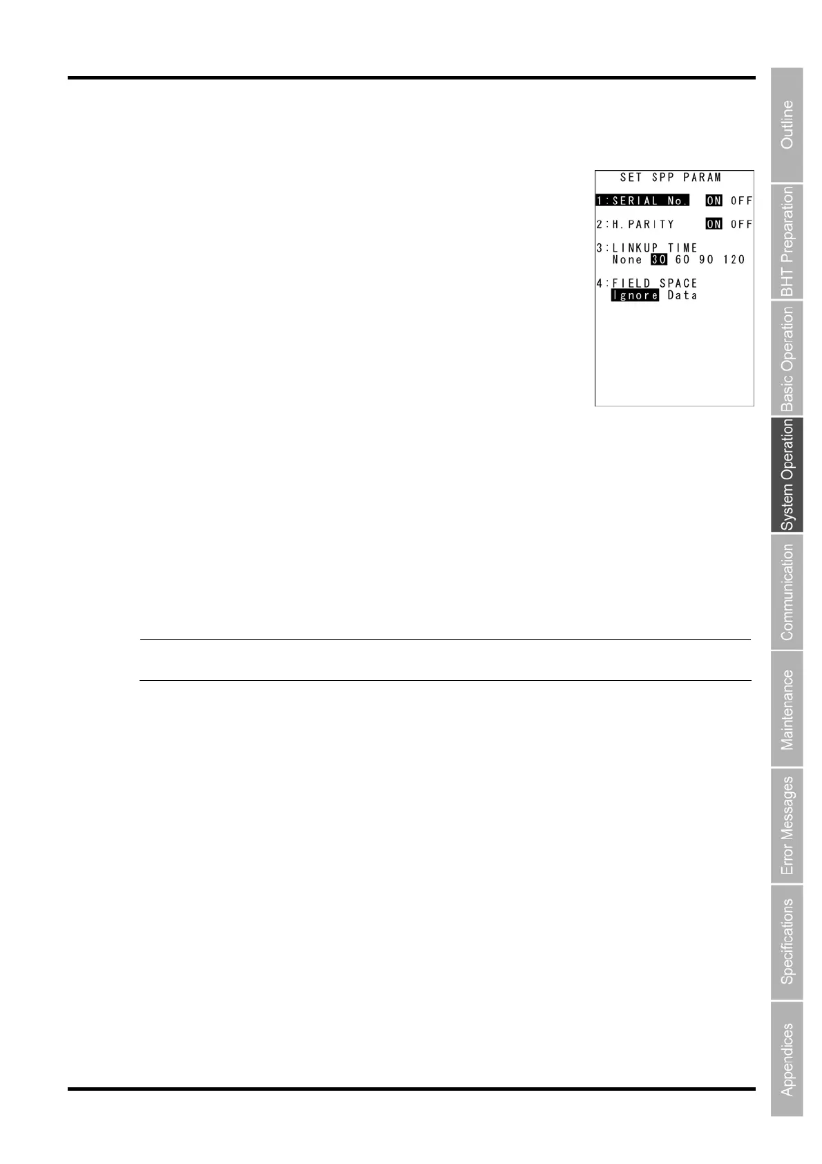 Point The “SERIAL No” and the “H.PARITY” settings are ignored when the BHT-Ir protocol or the