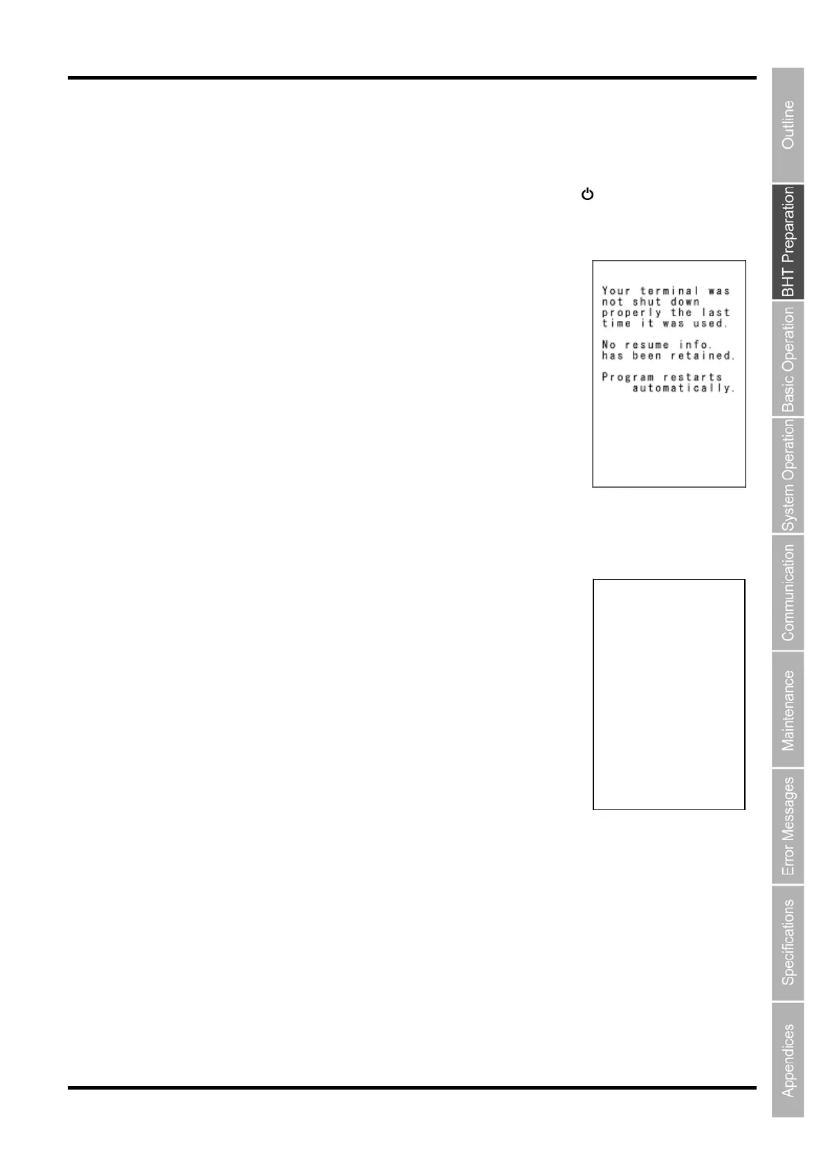 1. The message on the right appears when the BHT is turned ON