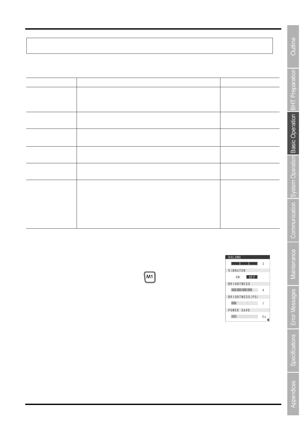 The volume, vibrator, LCD display brightness and power save settings can be changed at the MENU screen.