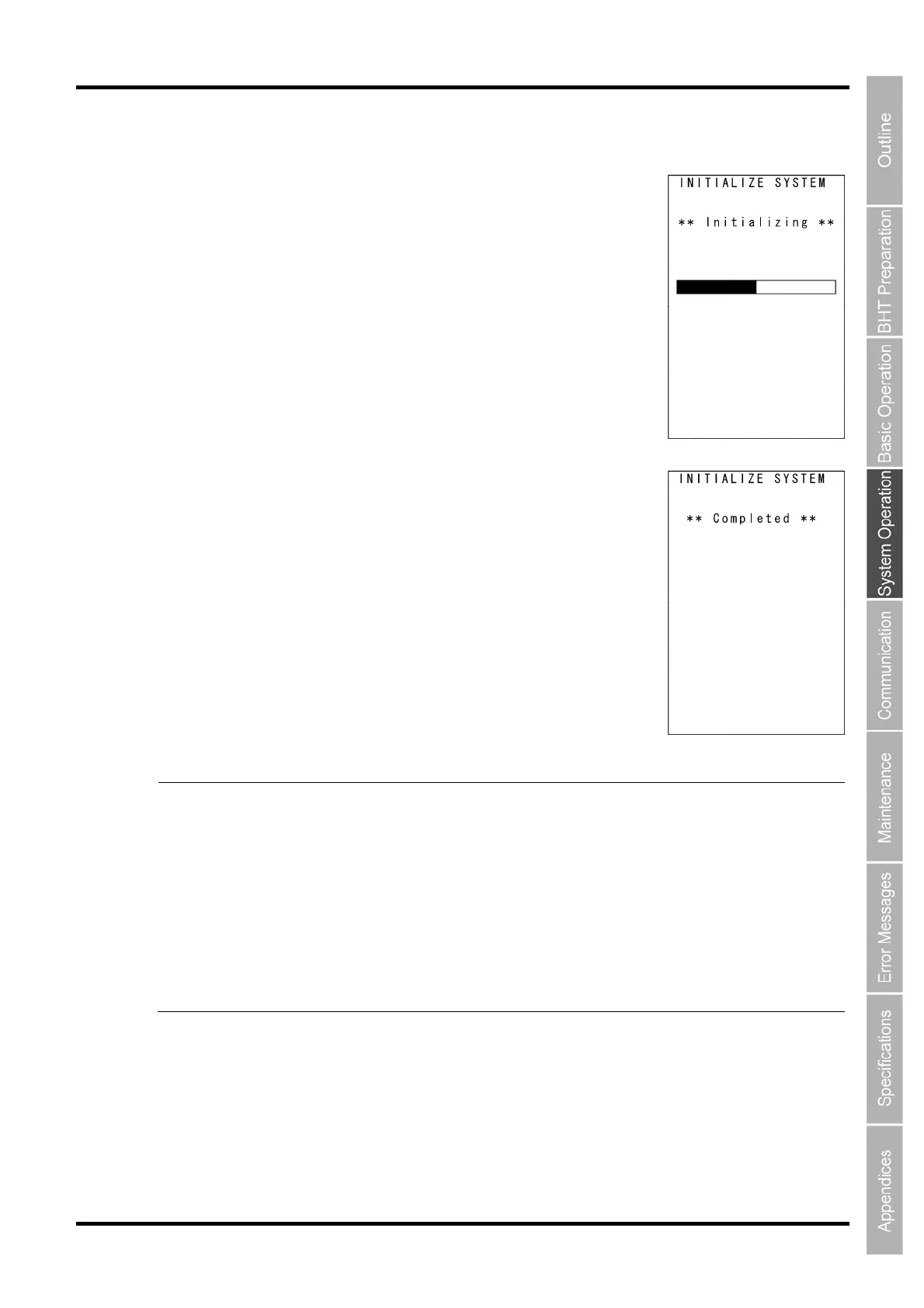 - Point - Never turn OFF the BHT power during system initialization. Turning the power OFF too early