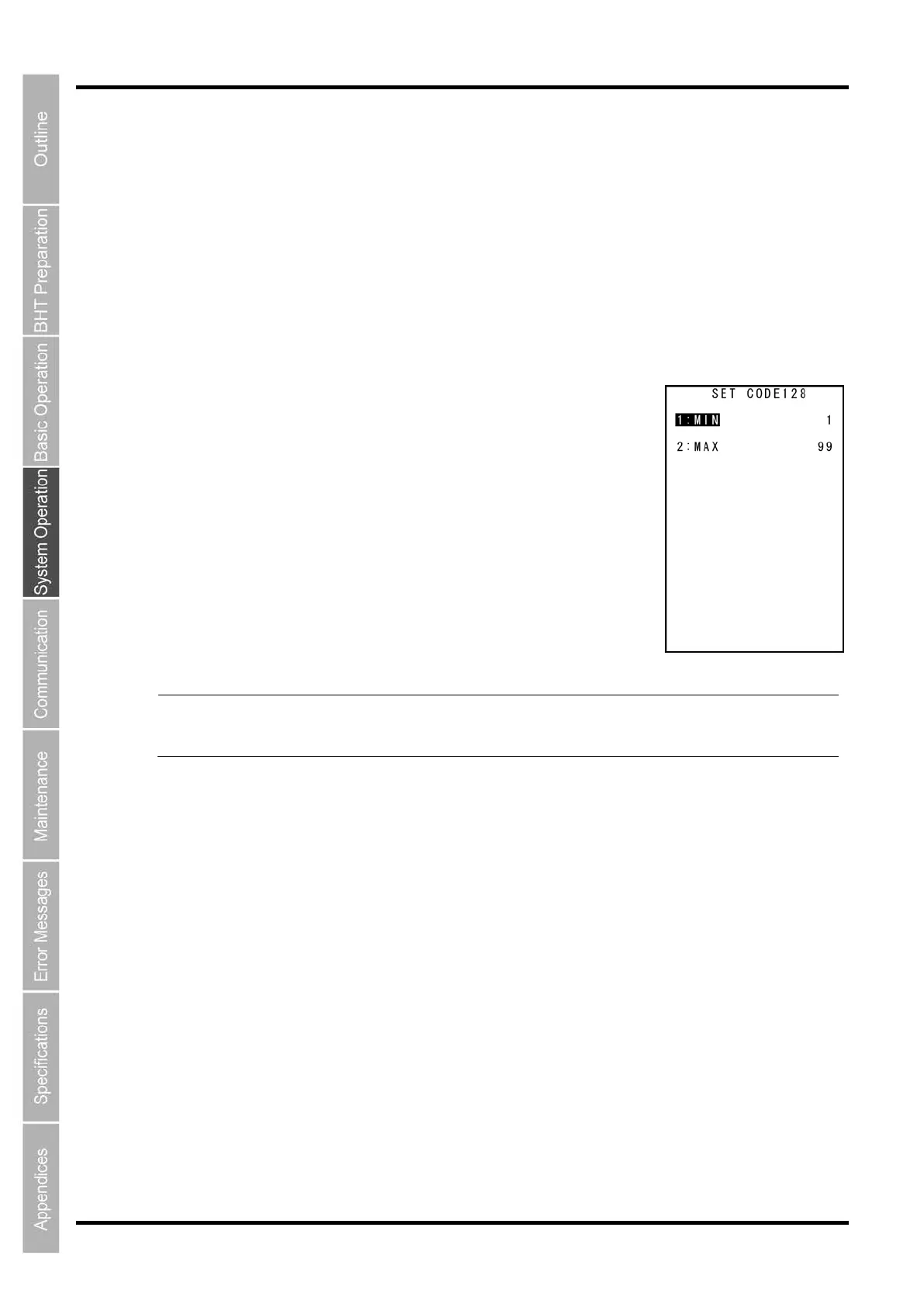1. Select “6: CODE128” at the SET BARCODE menu and then press