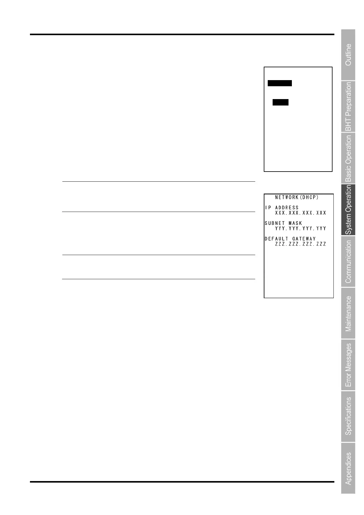 display the NETWORK (DHCP) screen (acquisition check screen for IP