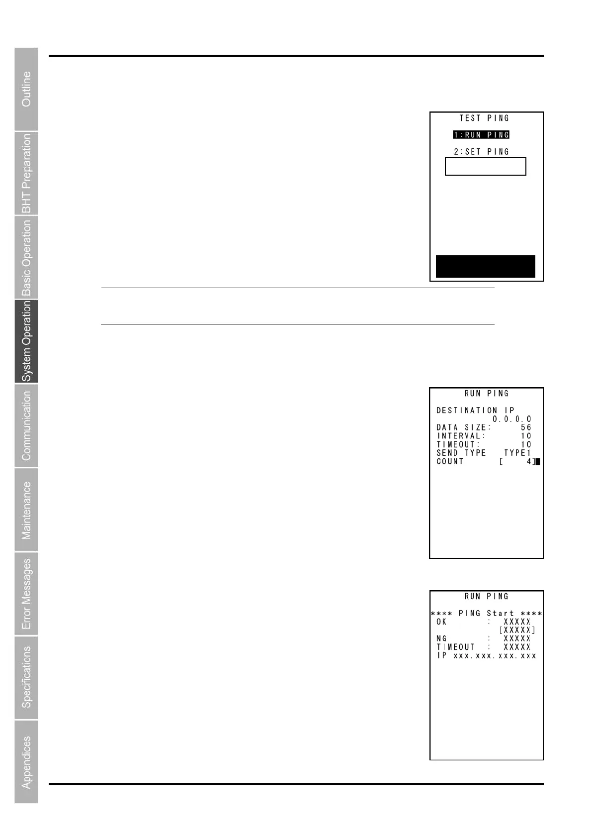 1. Select “9: PING” at the TEST menu and then press the ENT key.
