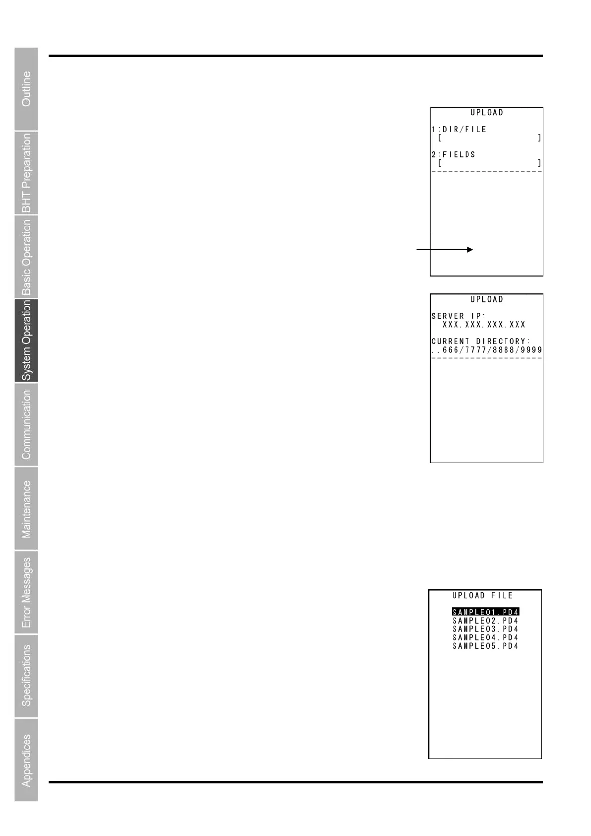 1. Select “2: UPLOAD” at the FTP MENU and then press the ENT key.