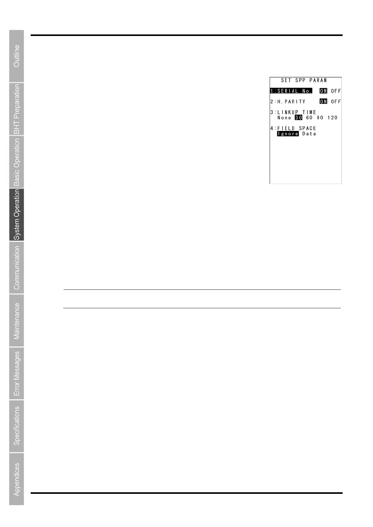 he “SERIAL No” and the “H.PARITY” settings are ignored when the BHT-Ir protocol or