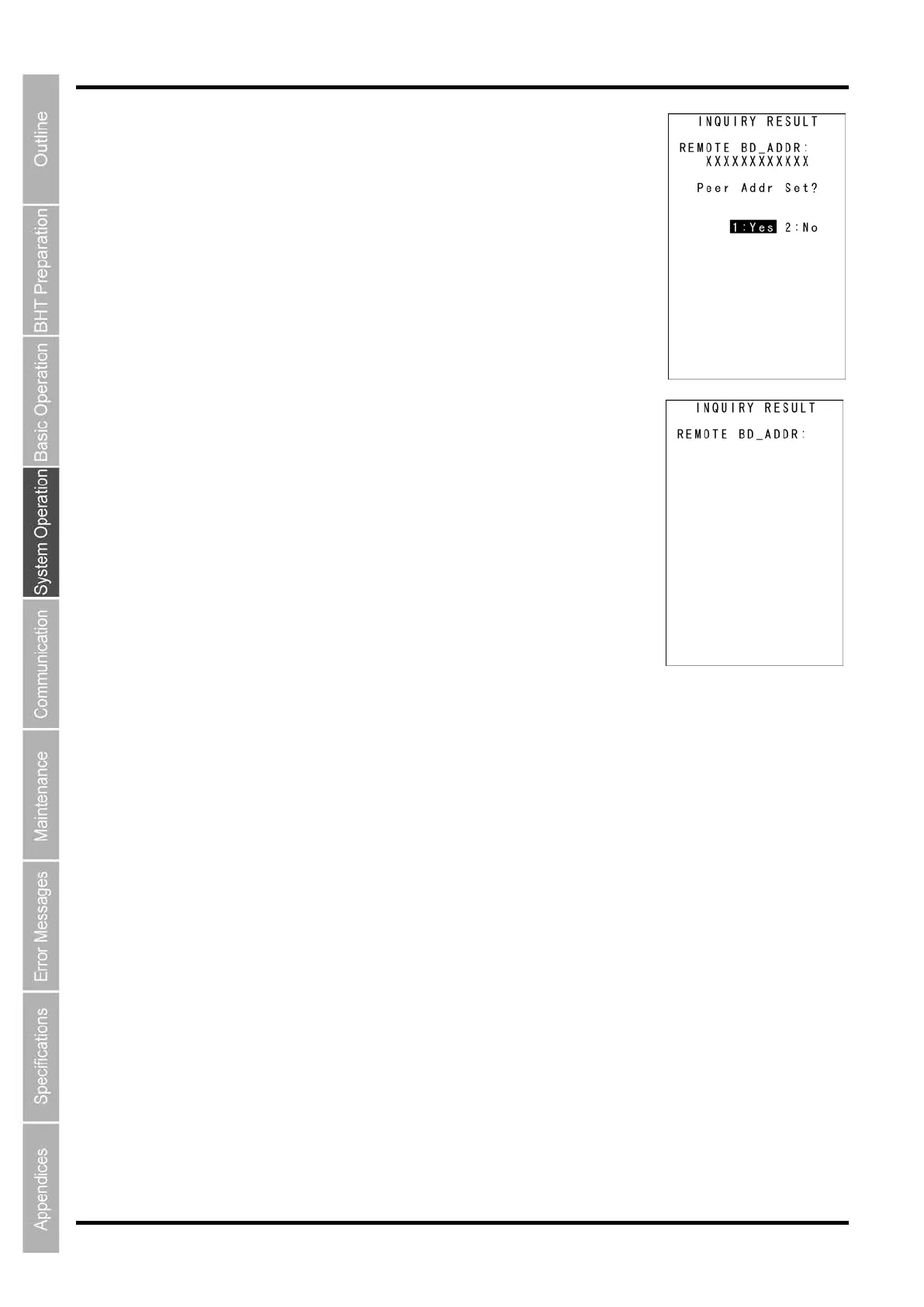 To set the selected address as a remote device address, select “1: Yes” and