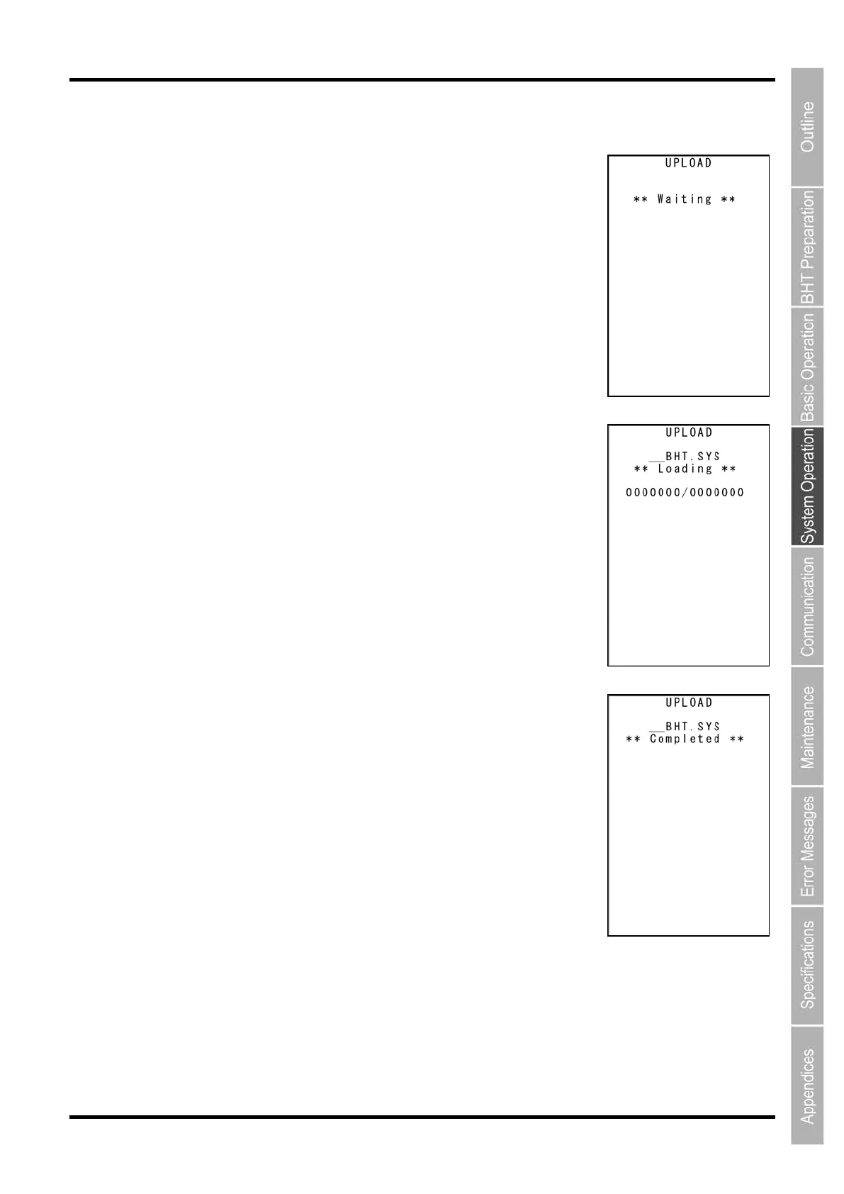 Press the BS/C key to abort the upload and return to the SYSTEM