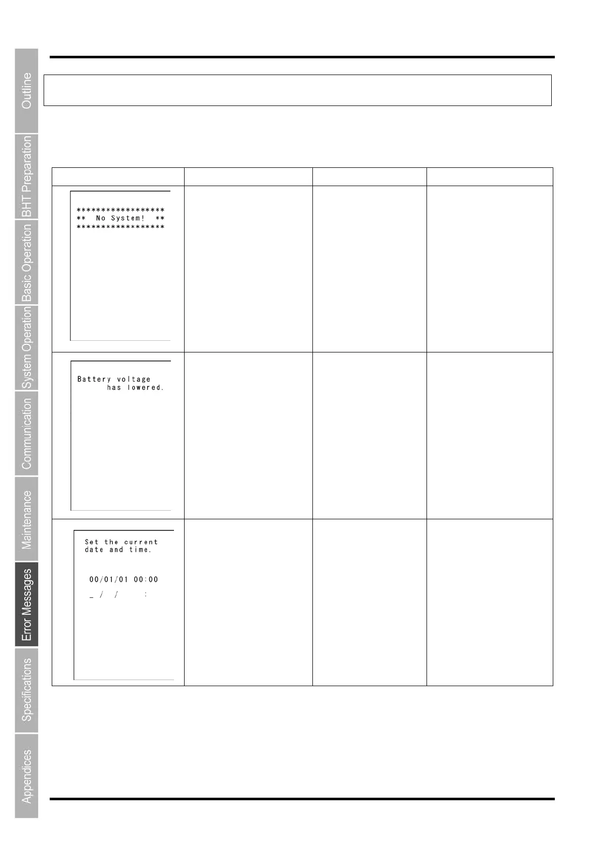 The error messages that display on the screen and the causes and countermeasures to be taken if an error occurs