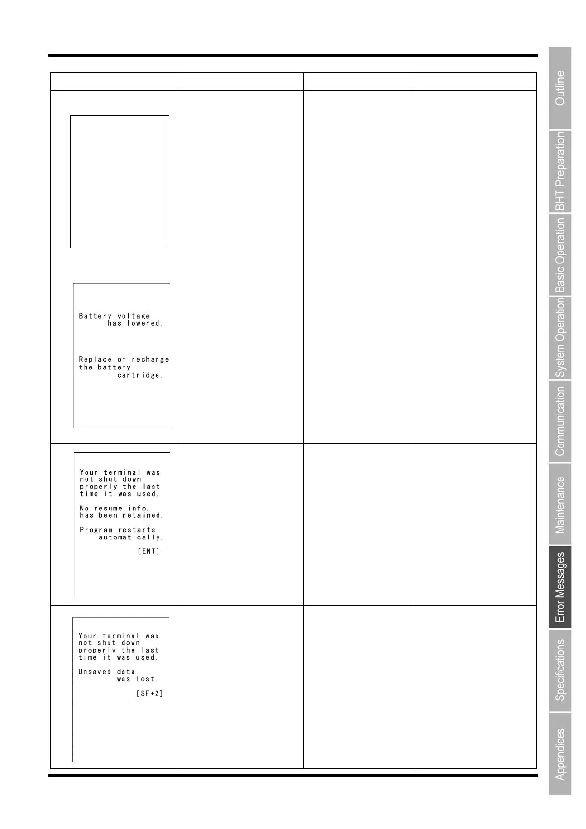 Message BHT Response Cause Countermeasure