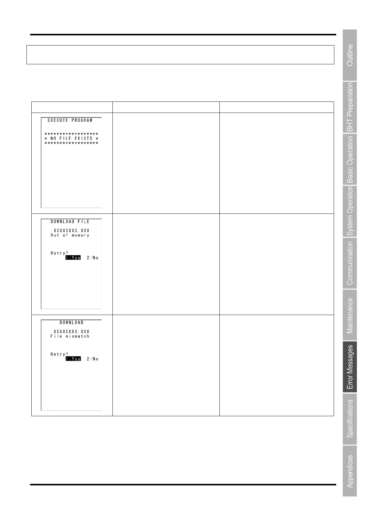 When error messages display while running System Mode, refer to the following table and take appropriate