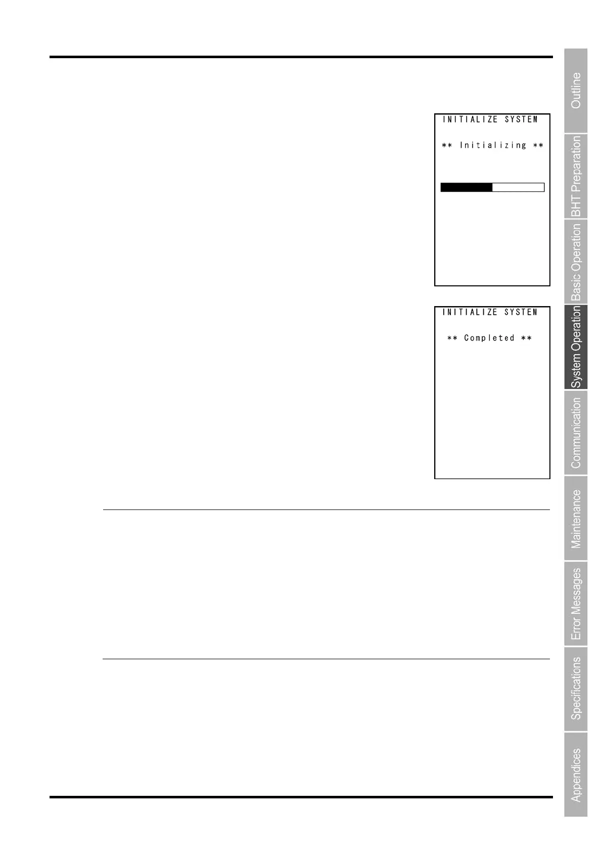 Never turn OFF the BHT power during system initialization. Turning the power OFF too early