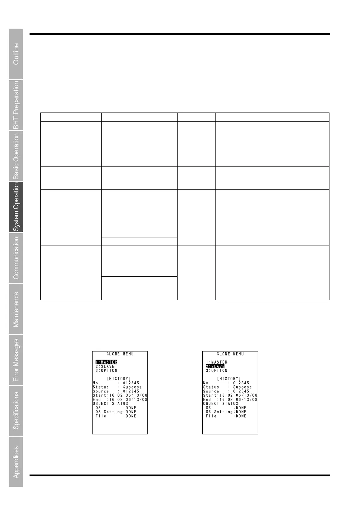 1. Perform the settings for the master-side clone using “2: CLONE” and “3:OPTION” from the