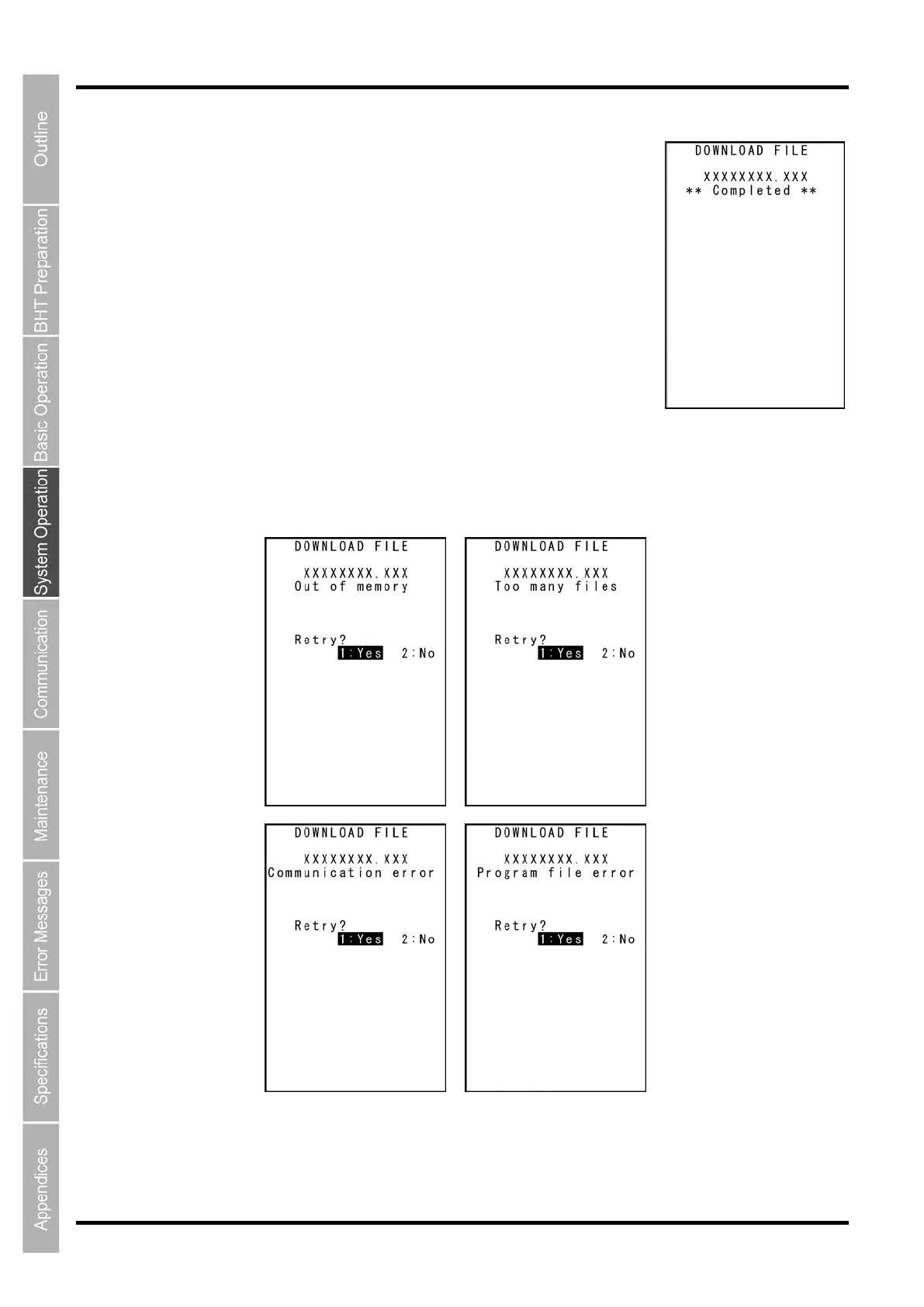 If an error message (screen below) appears during downloading, refer to “Chapter 7 Error Messages”.