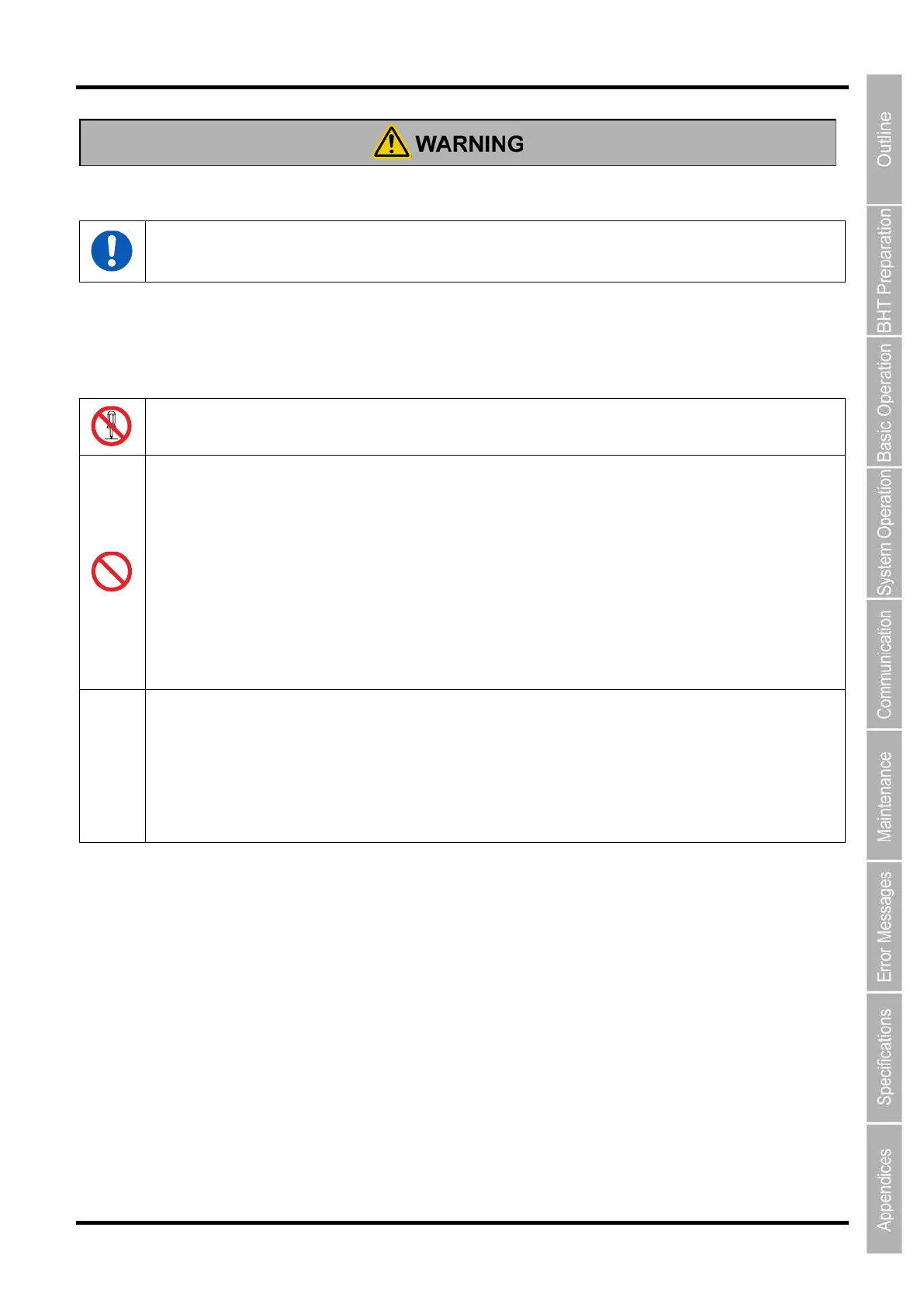 If smoke, abnormal odor or noise comes from the BHT, immediately turn off the power and remove the