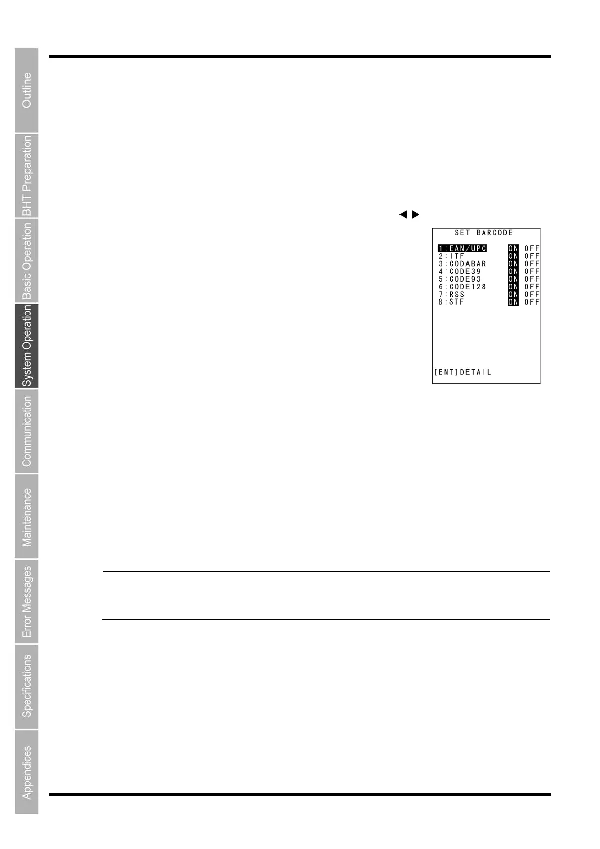 2. Press ENT key for the detailed settings of the bar code beign selected. Refer to the following