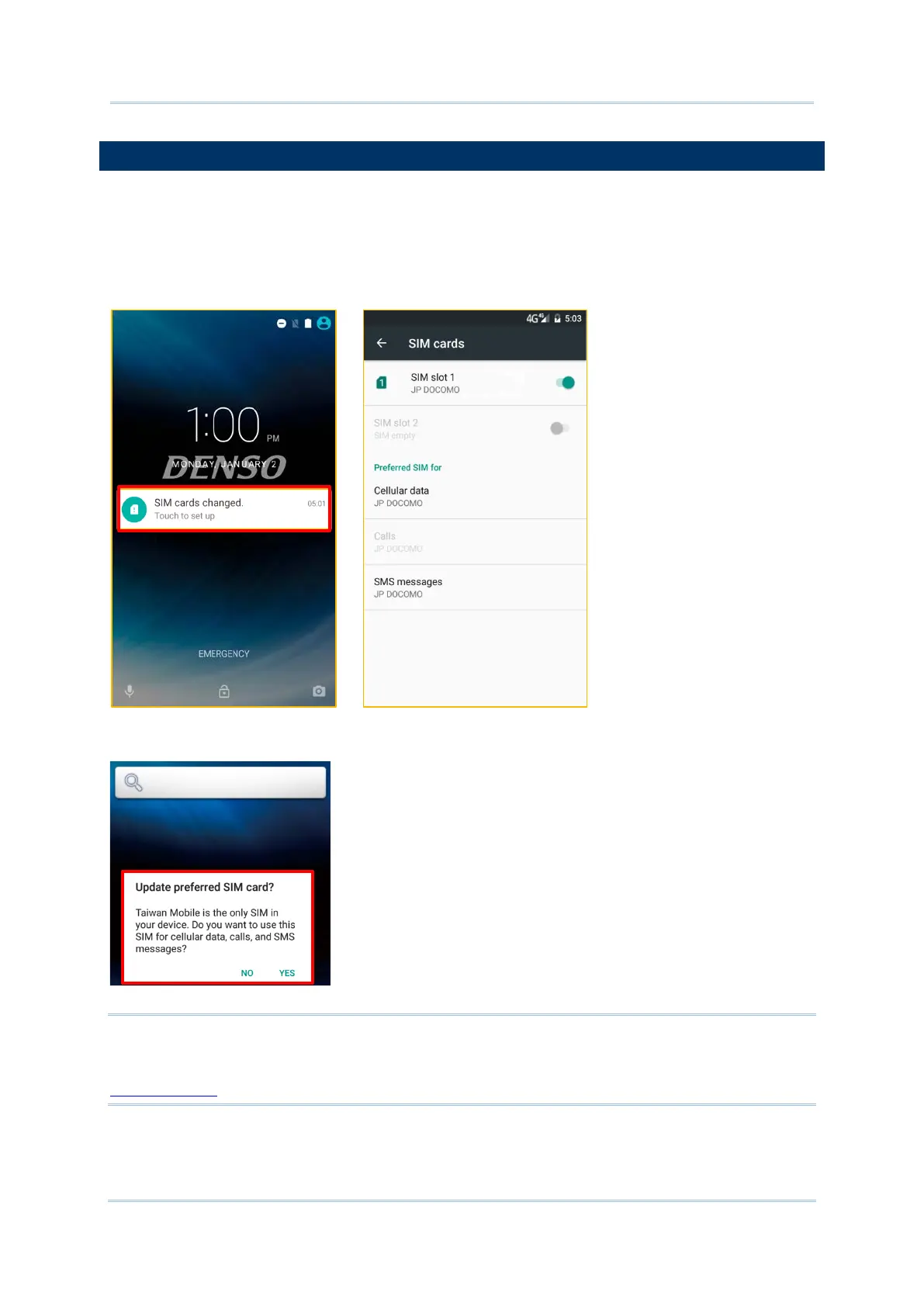 1) When a SIM card is inserted, a dialog will appear confirming the mobile carrier detected,