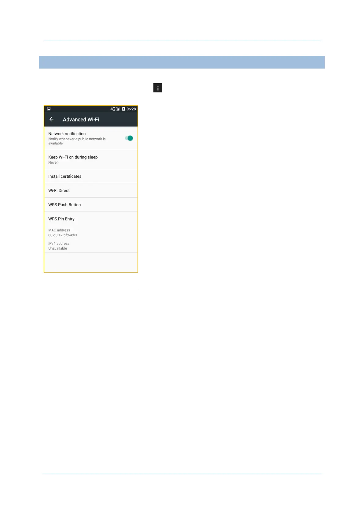 MAC address Displays the MAC address of the device when connecting to Wi-Fi-