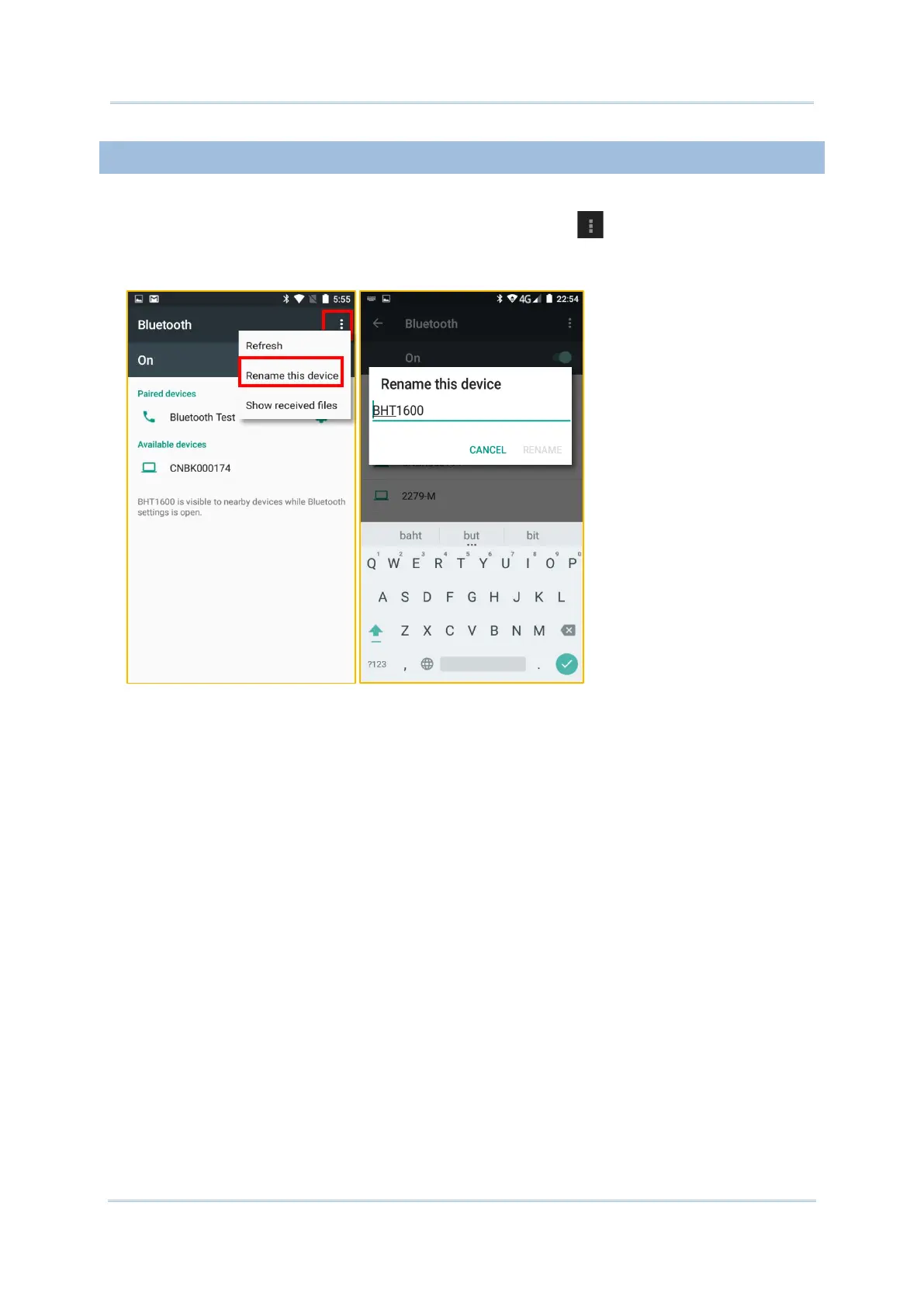 1) On the available Bluetooth devices screen, tap More and select Rename this