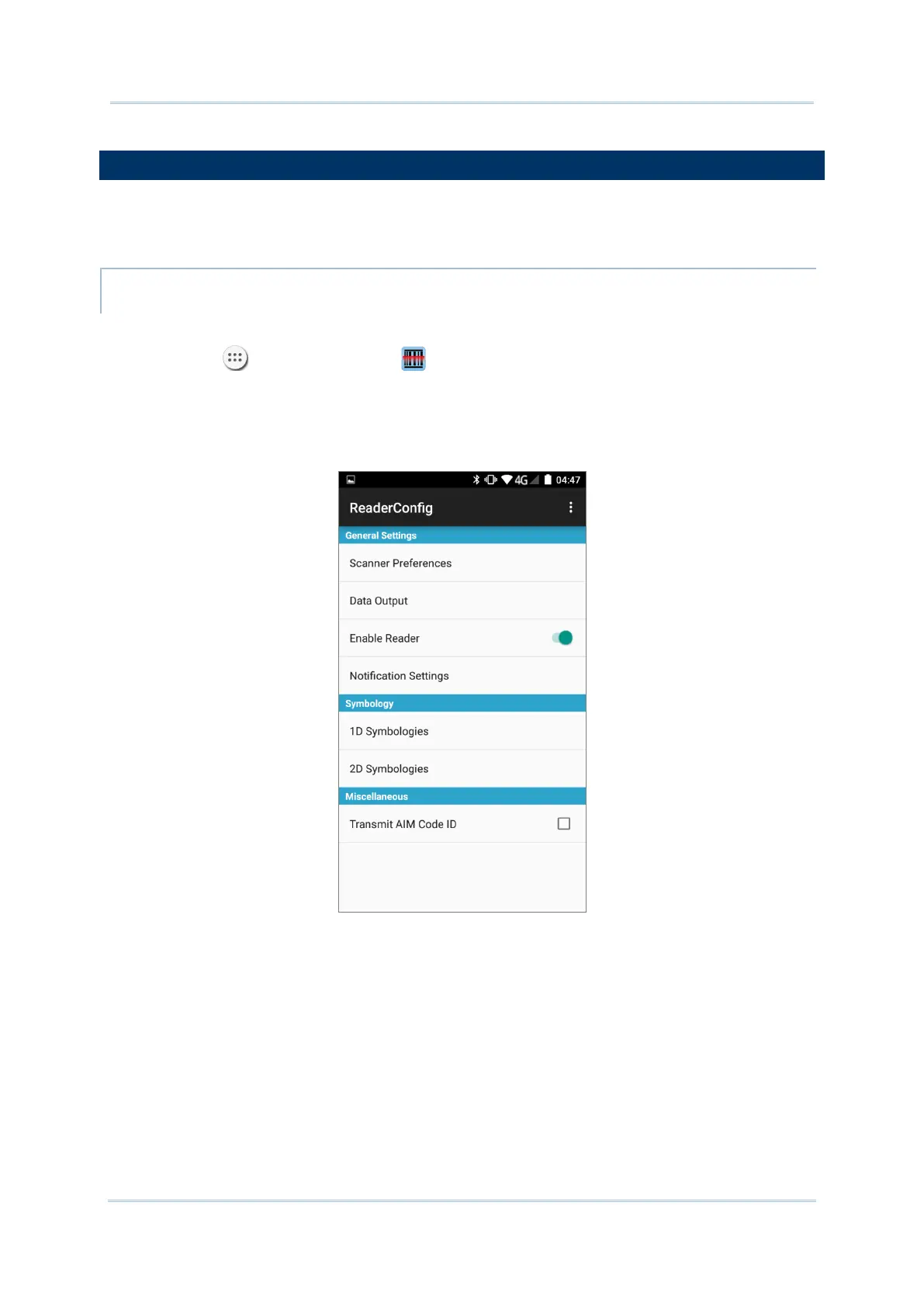 1) Tap Apps | Reader Config to open the Reader Configuration Utility.