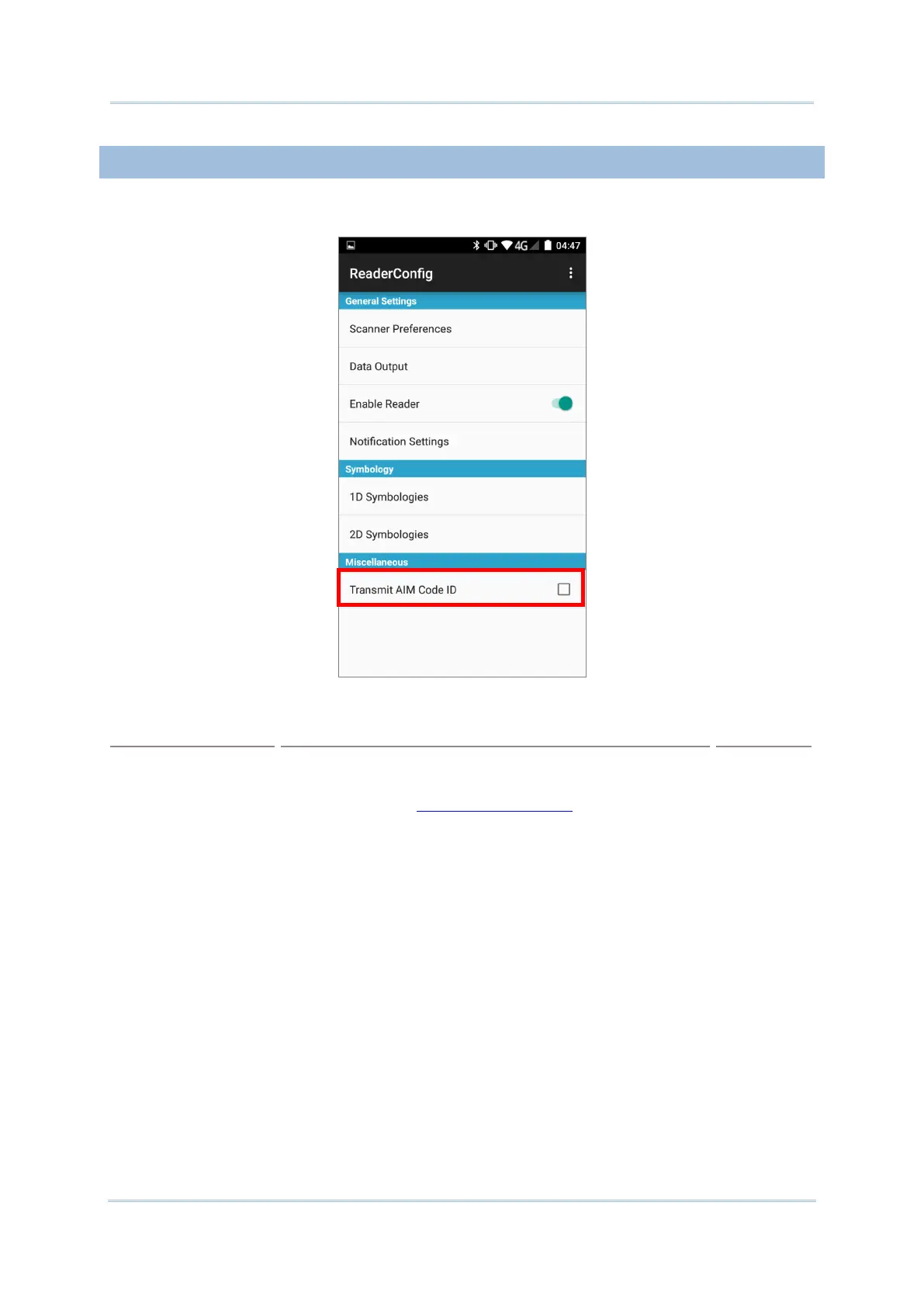 2D Imager Symbology Settings.
