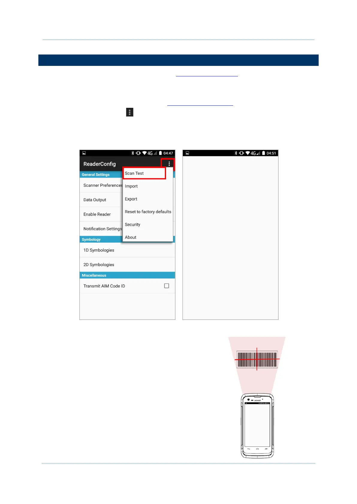 provides a Scan Test feature for quick viewing of decoded data.