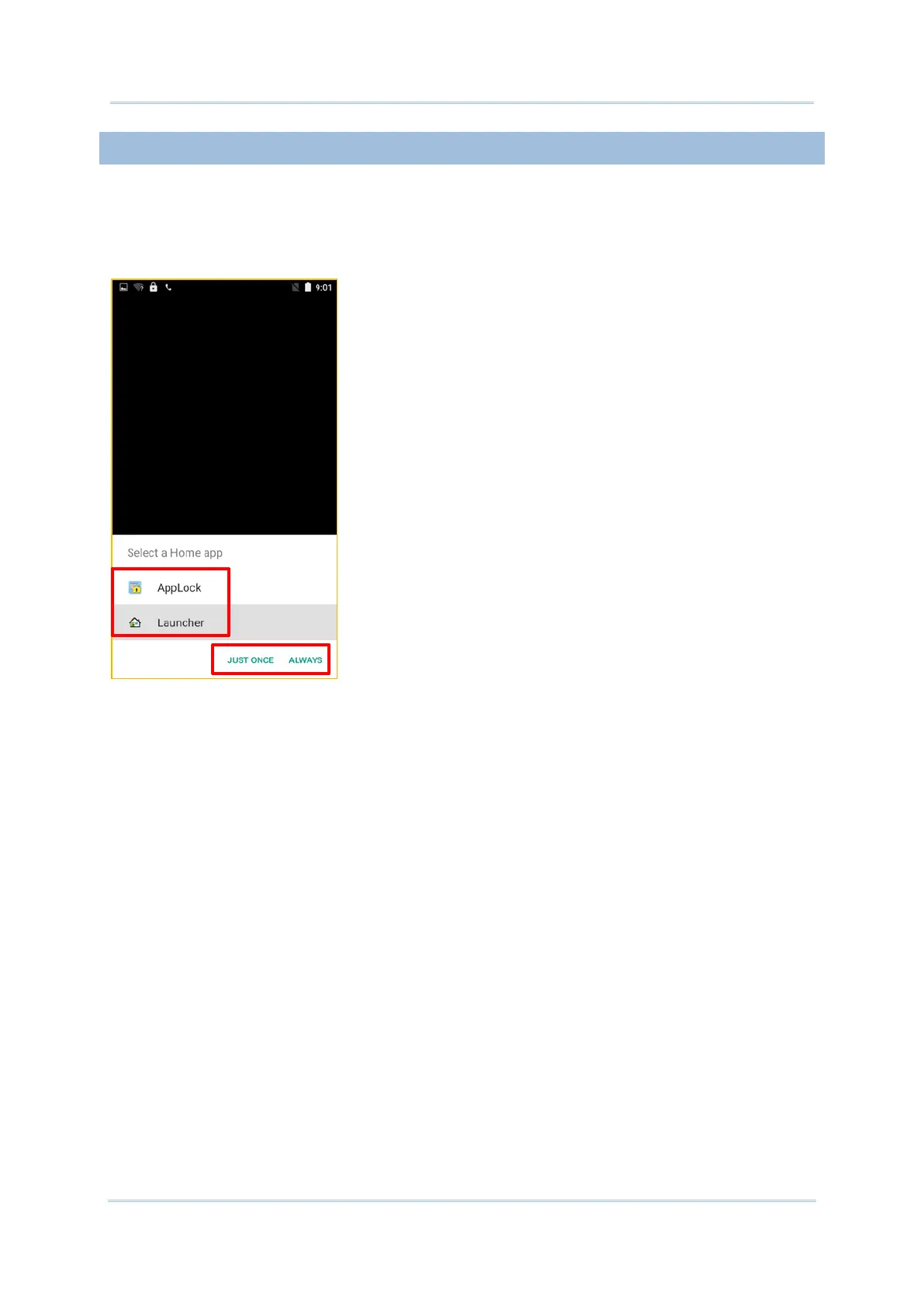 request your immediate choice of home screen. By selecting “AppLock”, you will directly