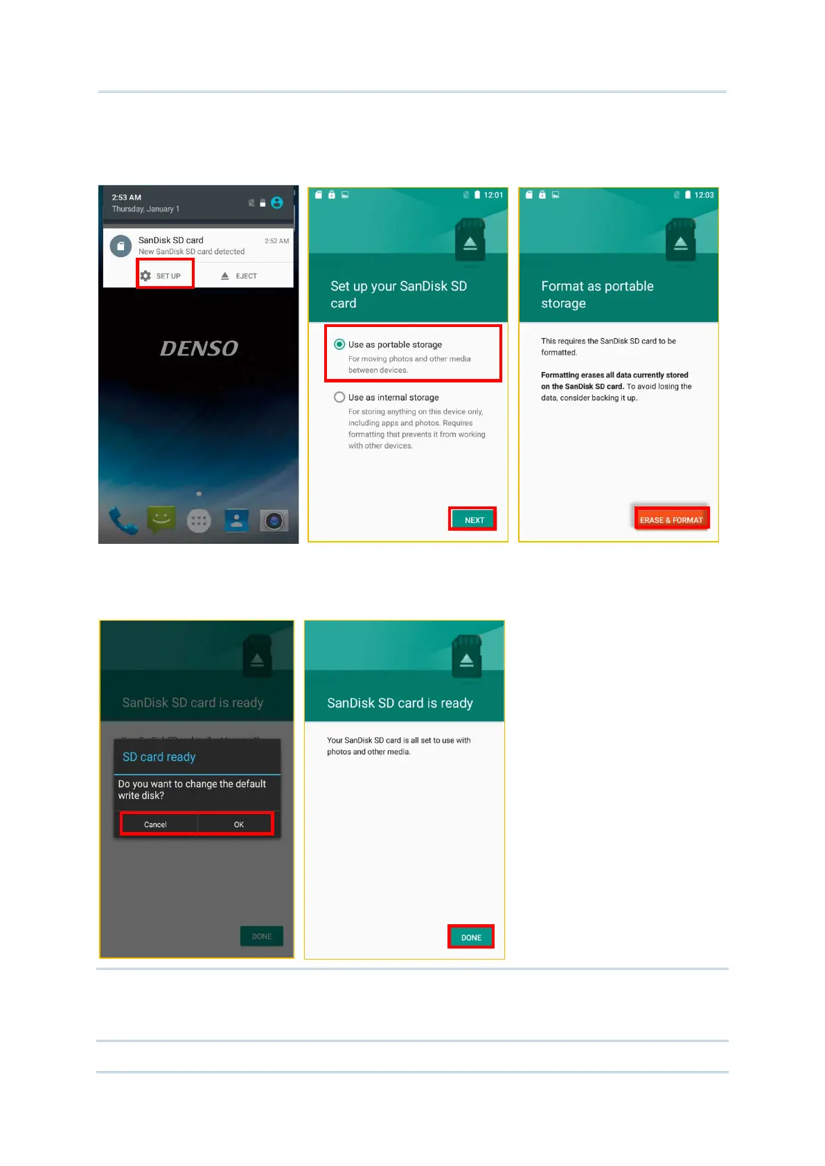 (default) to the SD card, tap “OK” to do so or “Cancel ” to stay with the default setting.