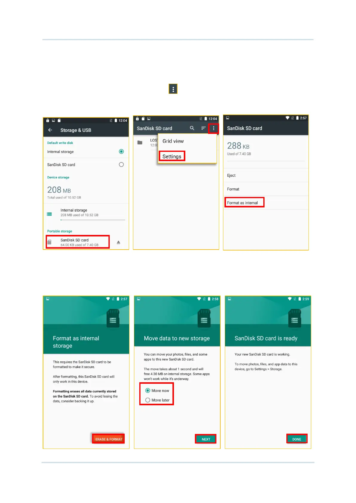 3) By selecting “Format as internal”, the device will eventually format this SD card into