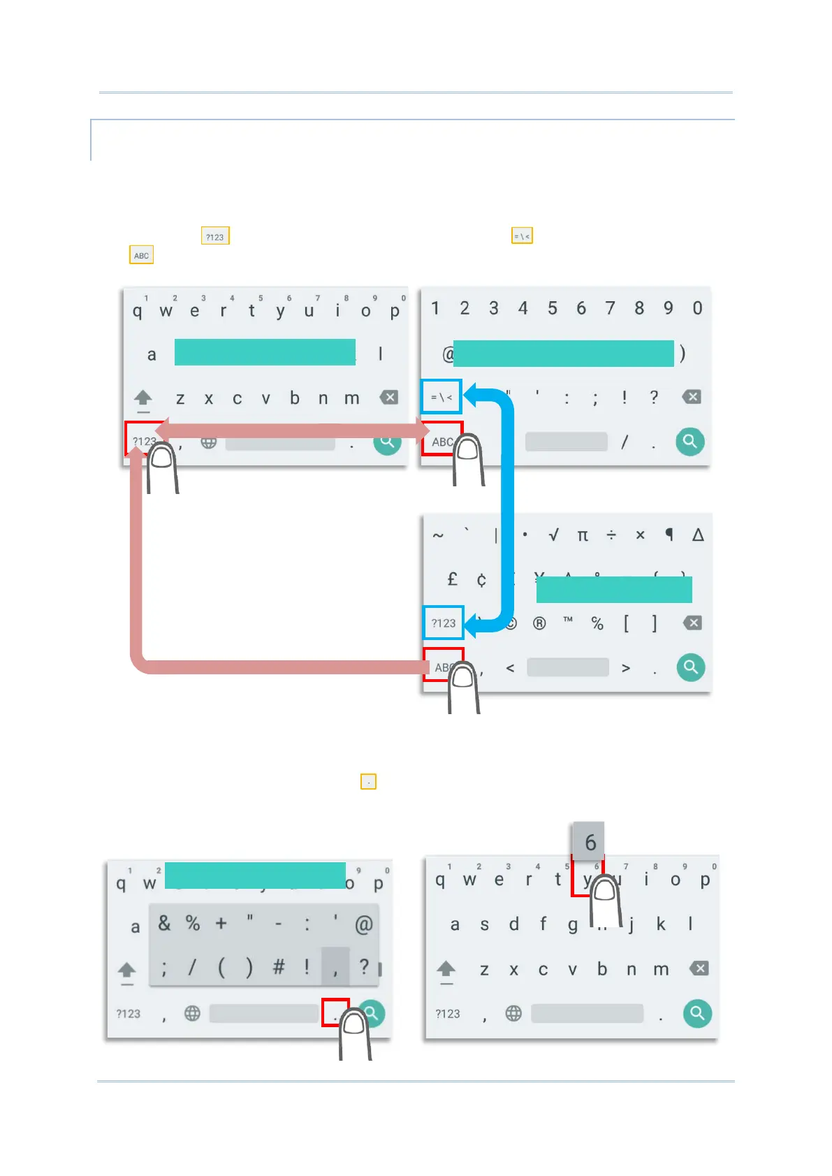 keyboards from the default Android English (US) keyboard. To enter Numeric / Symbol