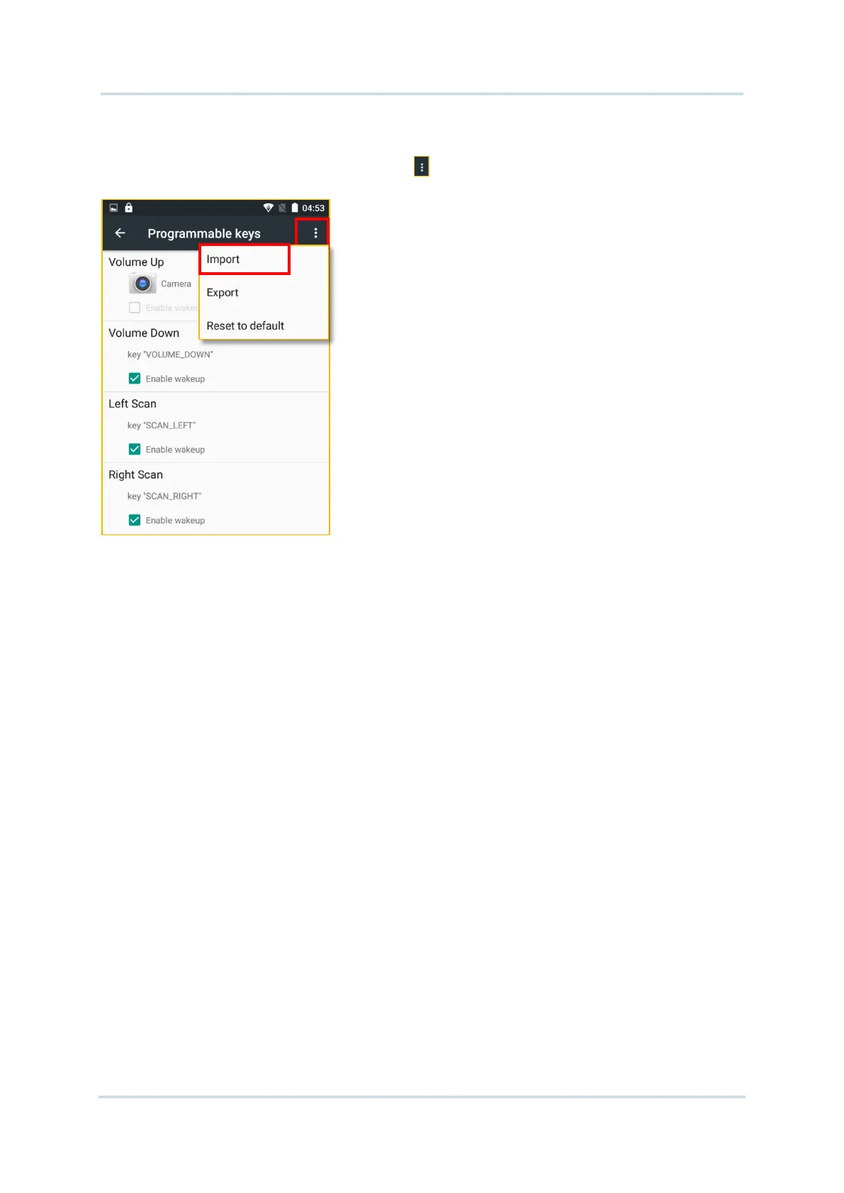 On Programmable keys screen, tap More and then “Import”. The new setting will be