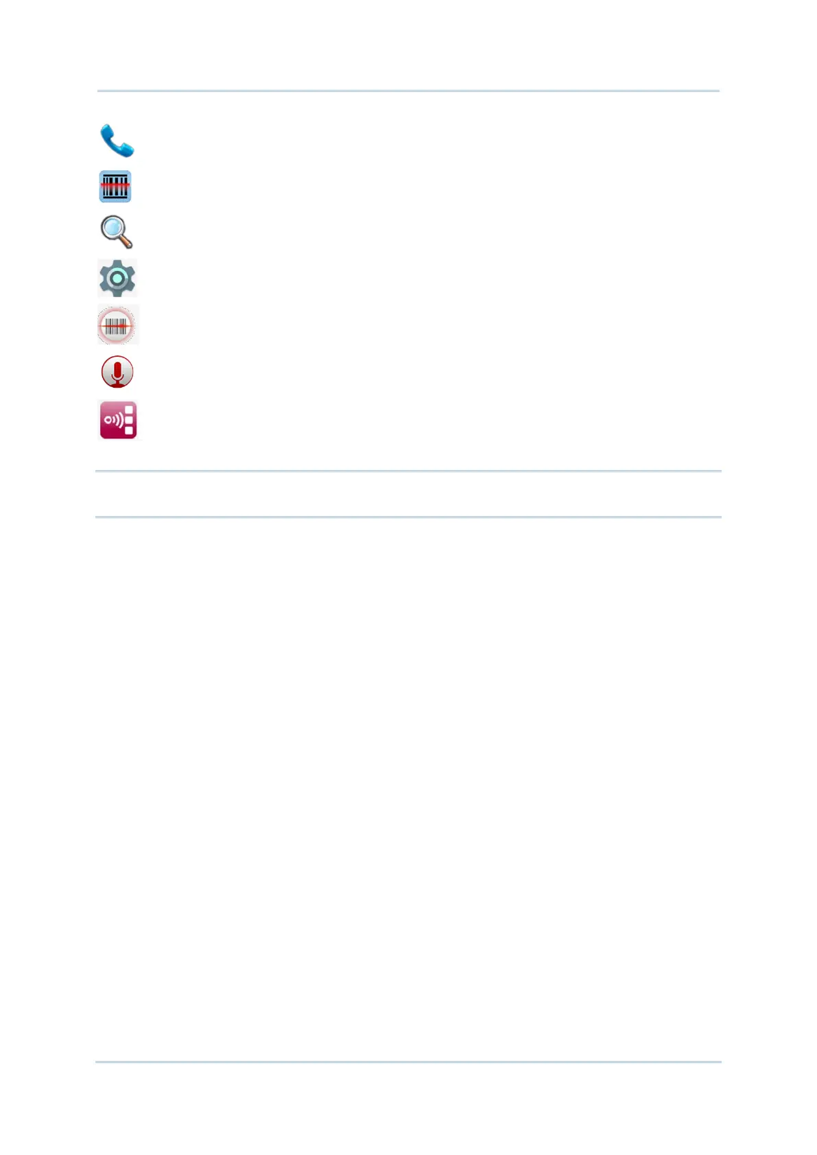 Settings Opens settings to configure the handy terminal.