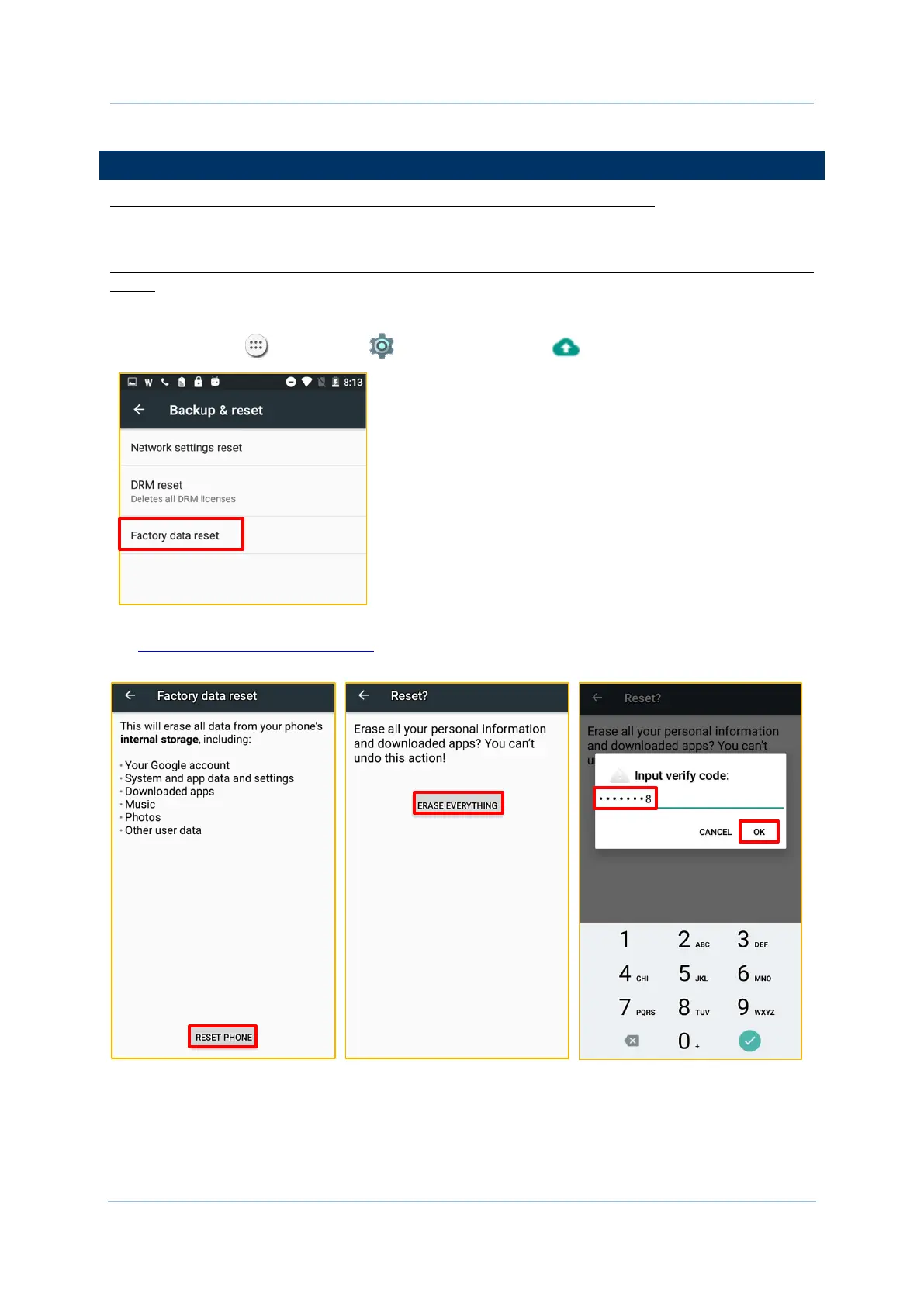 Performing a factory reset will erase all data on your handy terminal (including call logs,