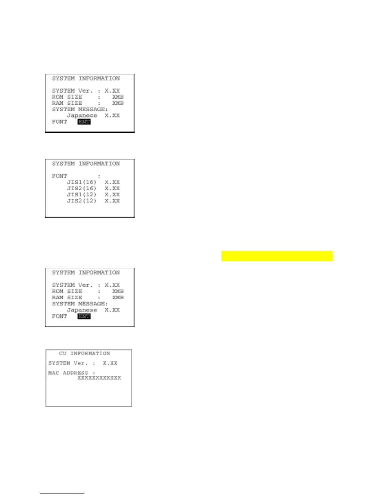 To return to the SYSTEM INFORMATION screen, press the M1 key.