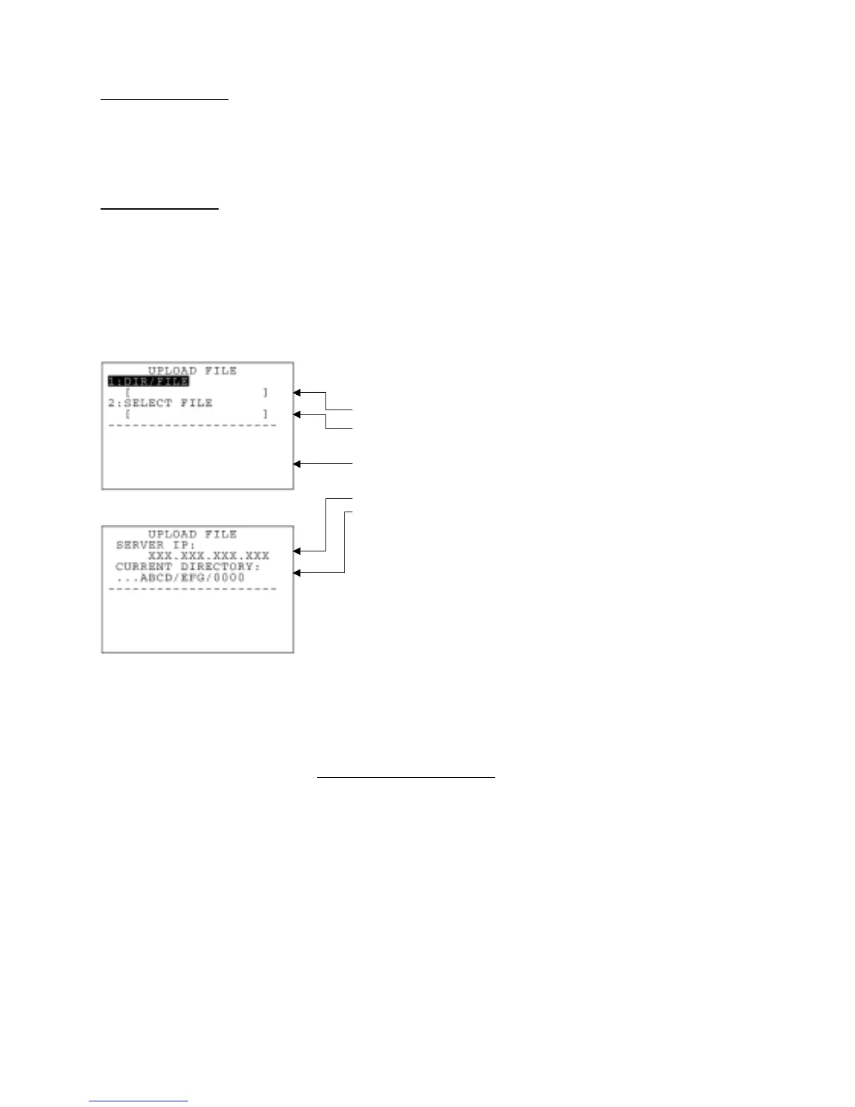 On the FTP MENU, selecting "2: UPLOAD" calls up the screen shown