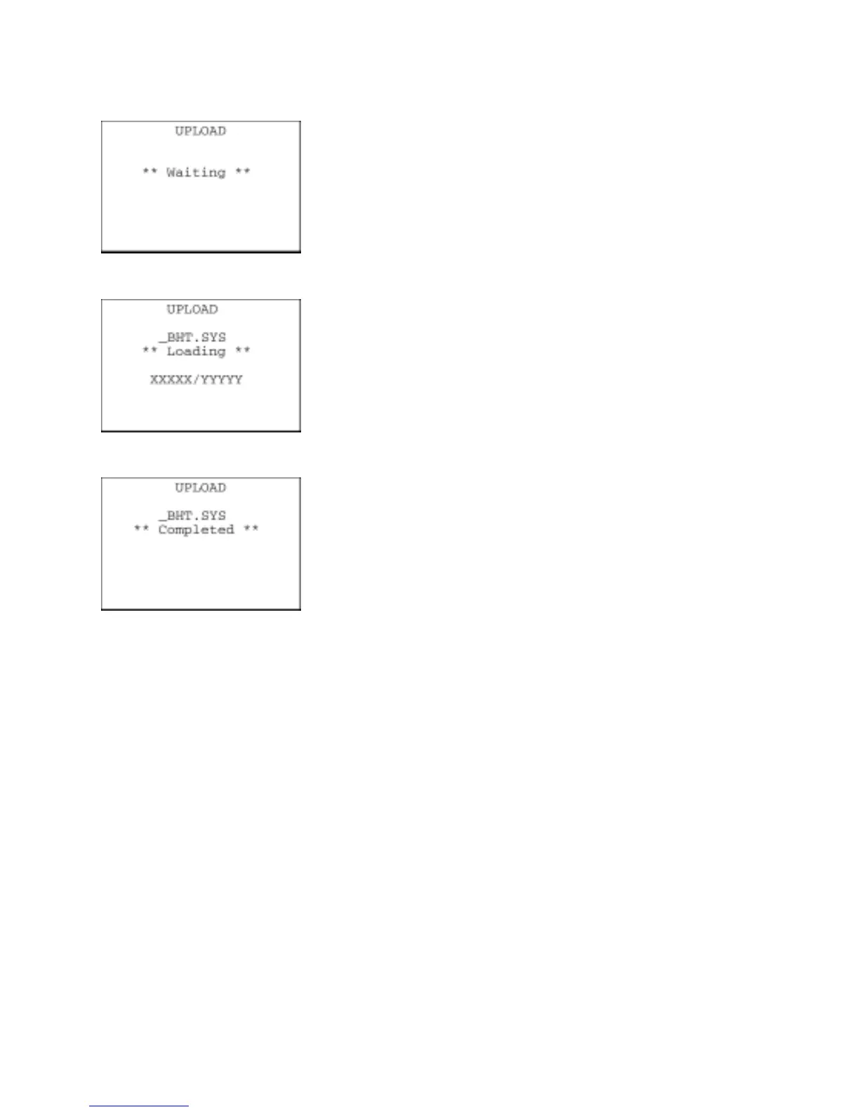 To abort the uploading operation, press the C key. The screen will