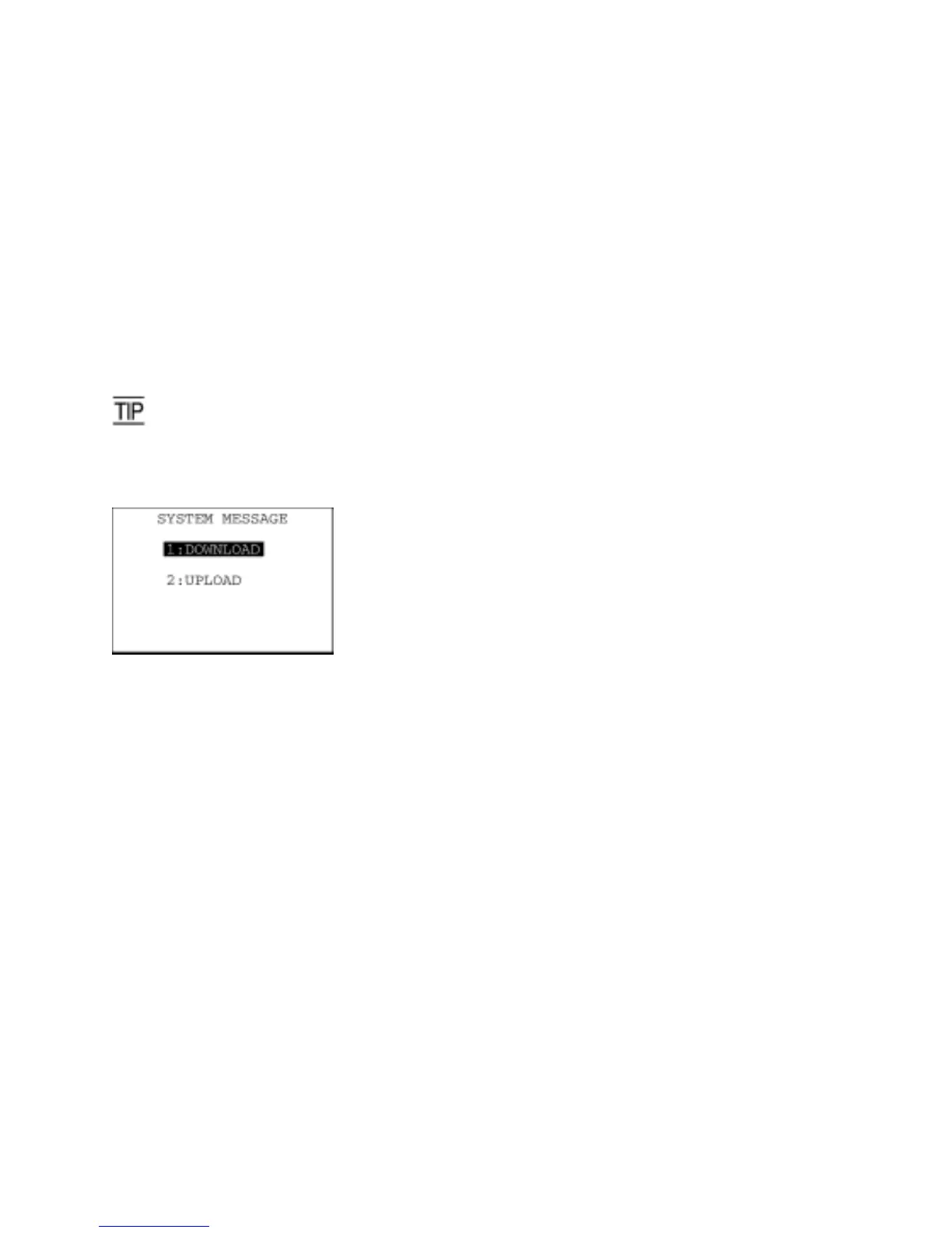 The SYSTEM MESSAGE transfer menu allows you to upload or download the system message file