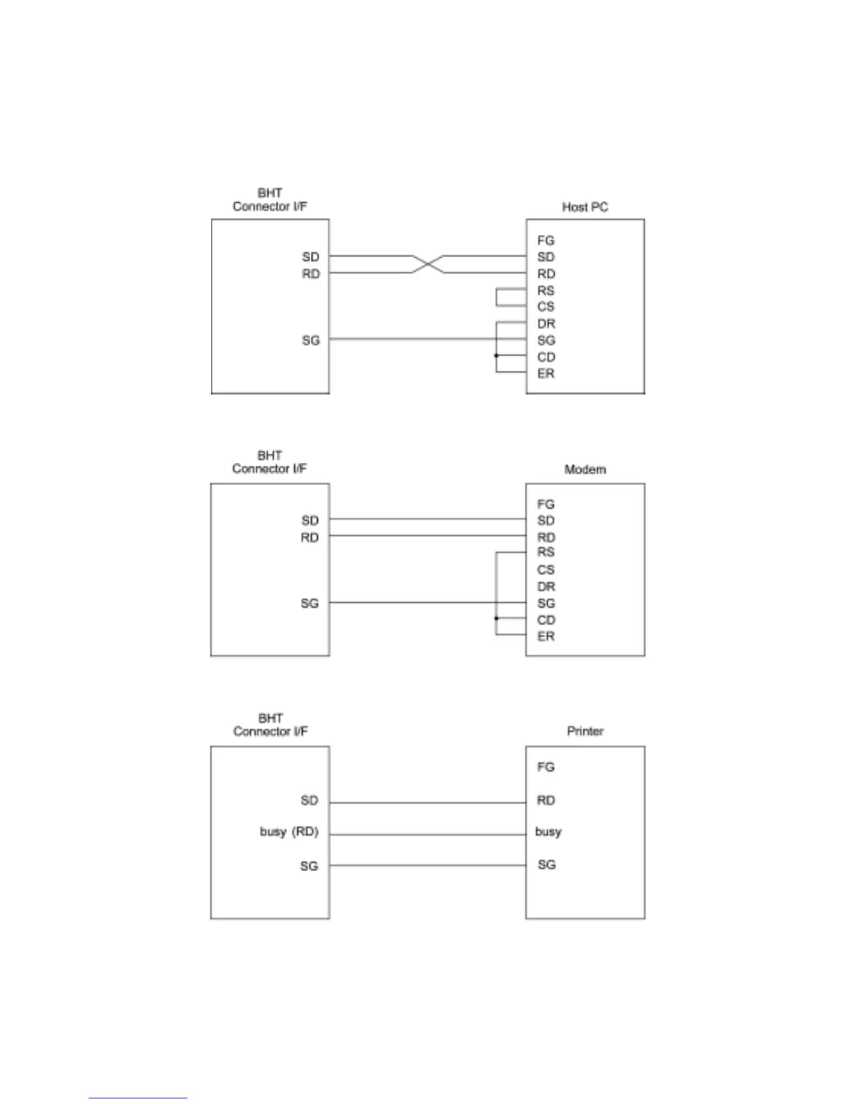 Connect the BHT directly to a host PC, a modem, or a printer with a direct-connect interface cable as