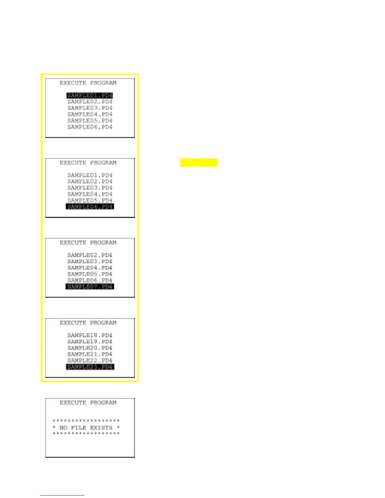 If no program file is downloaded in the memory, the message shown