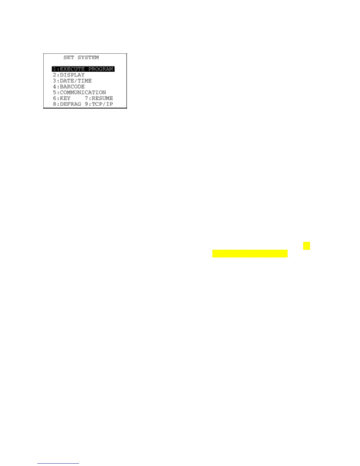 On the SYSTEM MENU, selecting "4: SET SYSTEM" calls up the