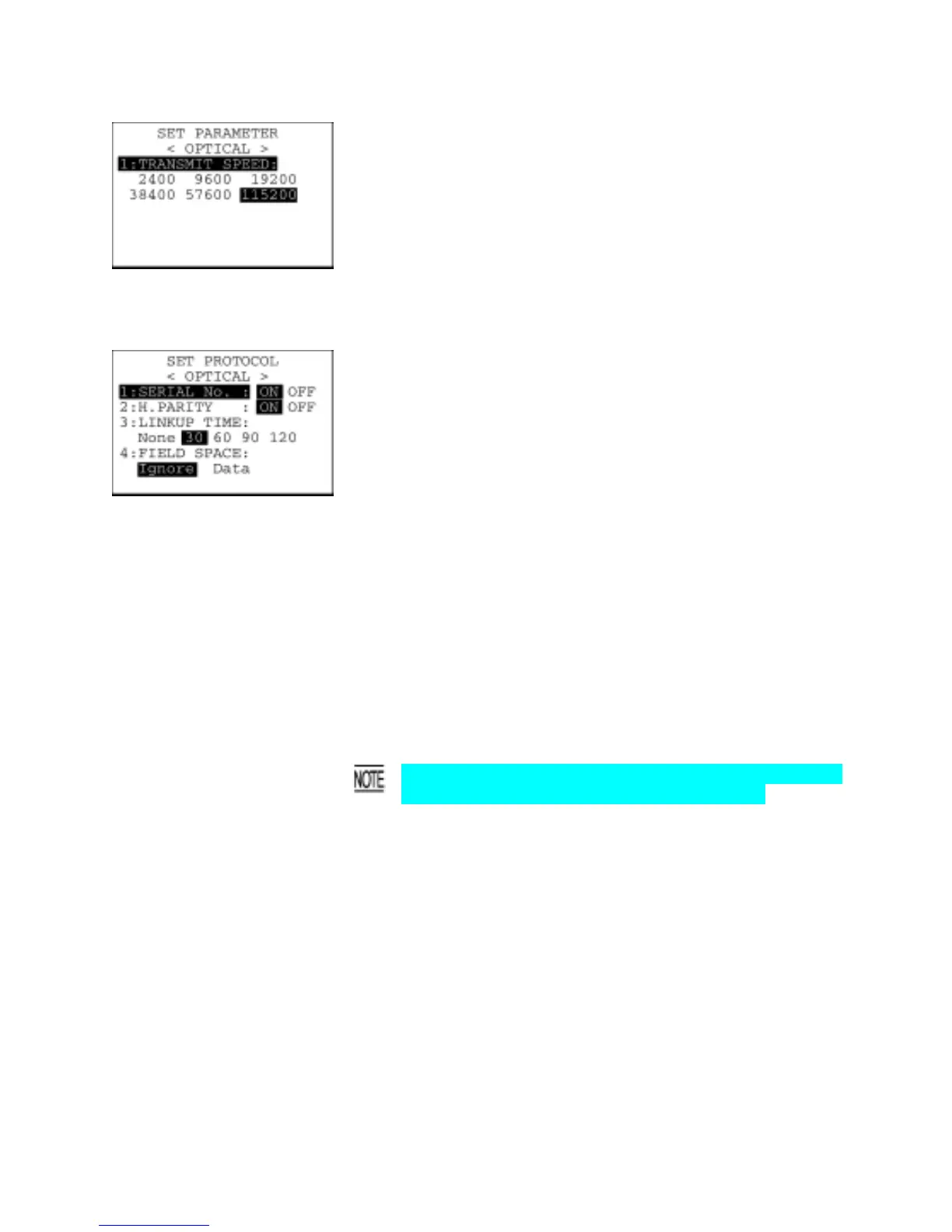 On the SET OPTICAL screen, select "2: PROTOCOL" to call up the